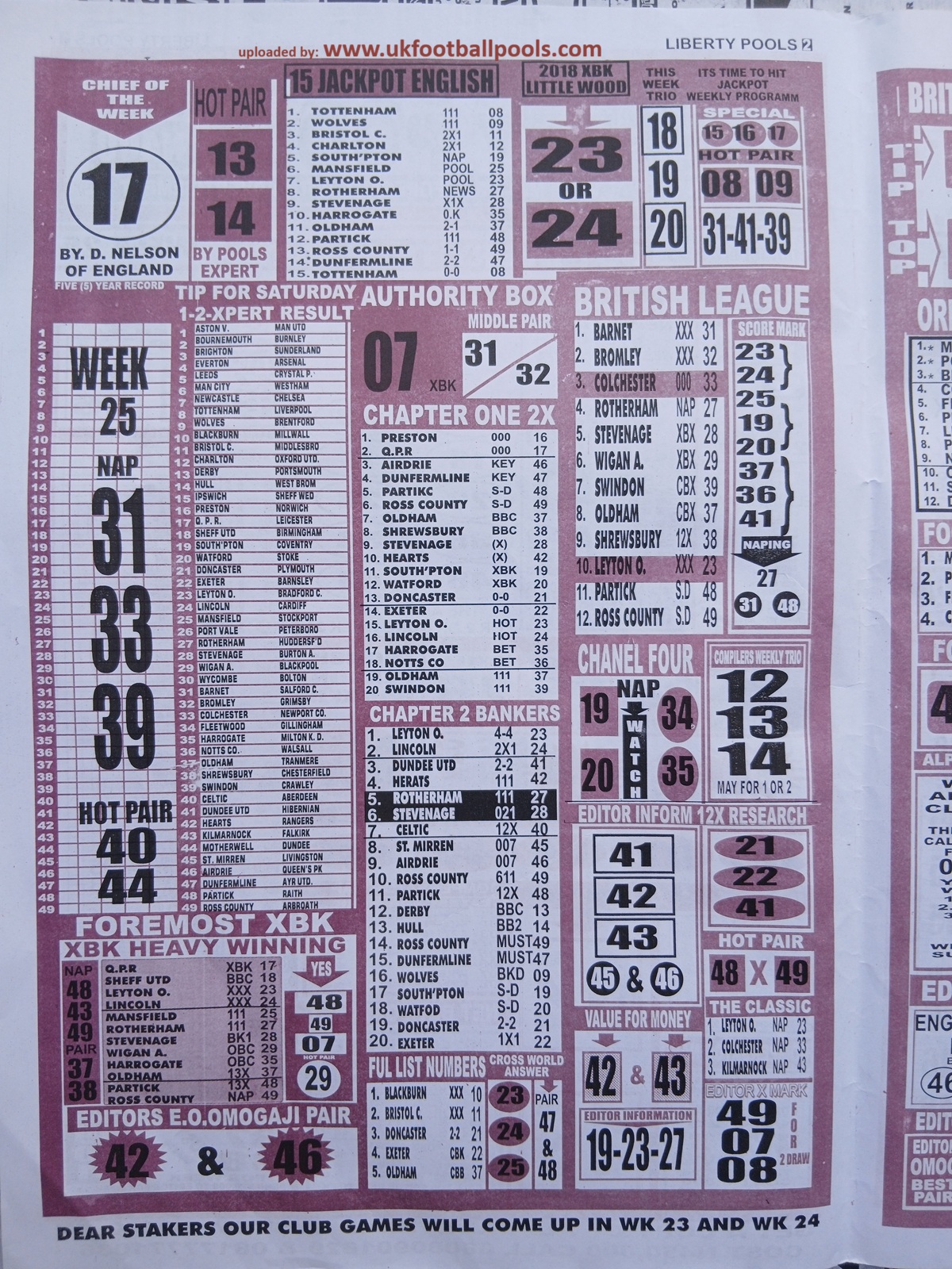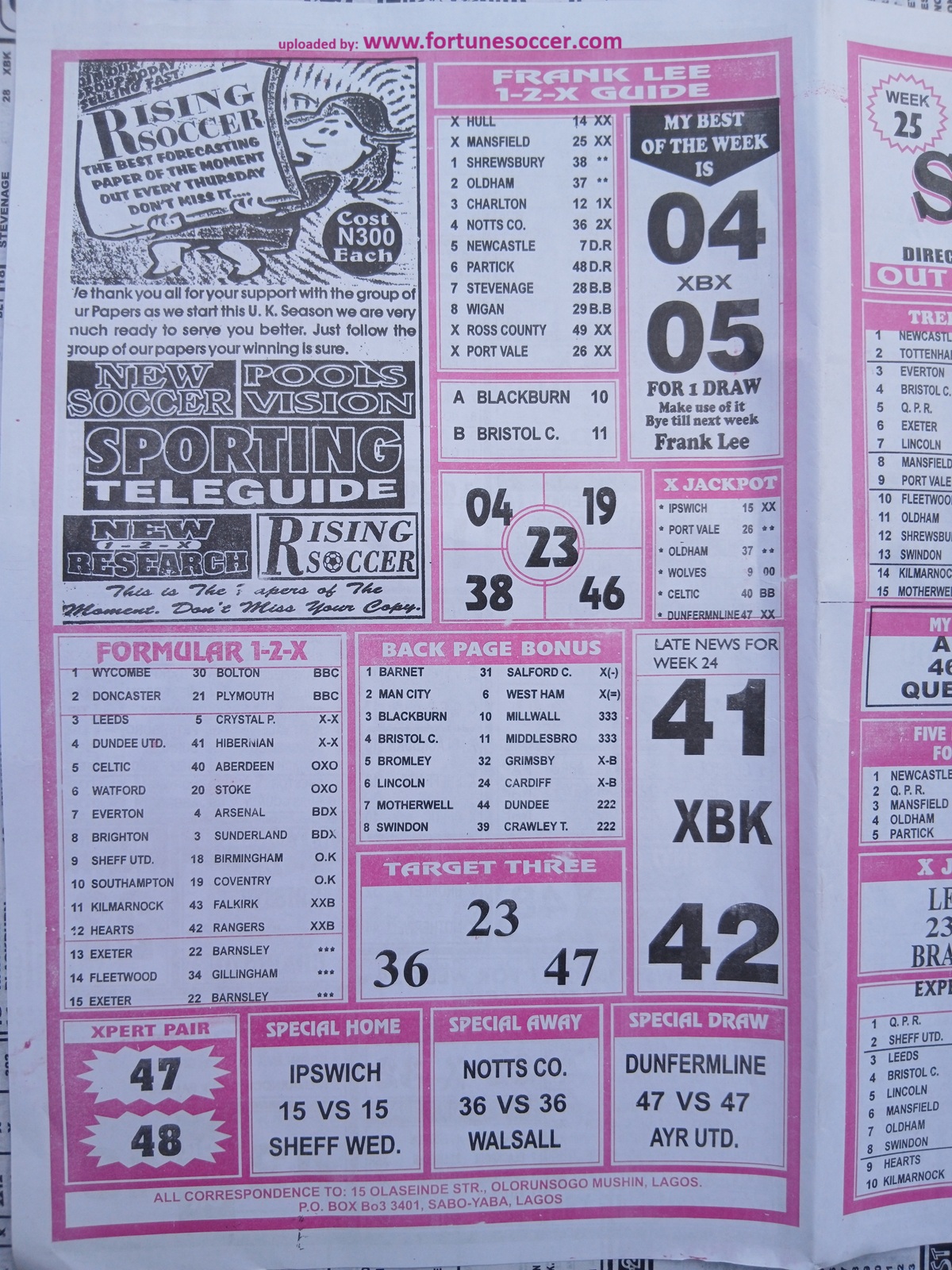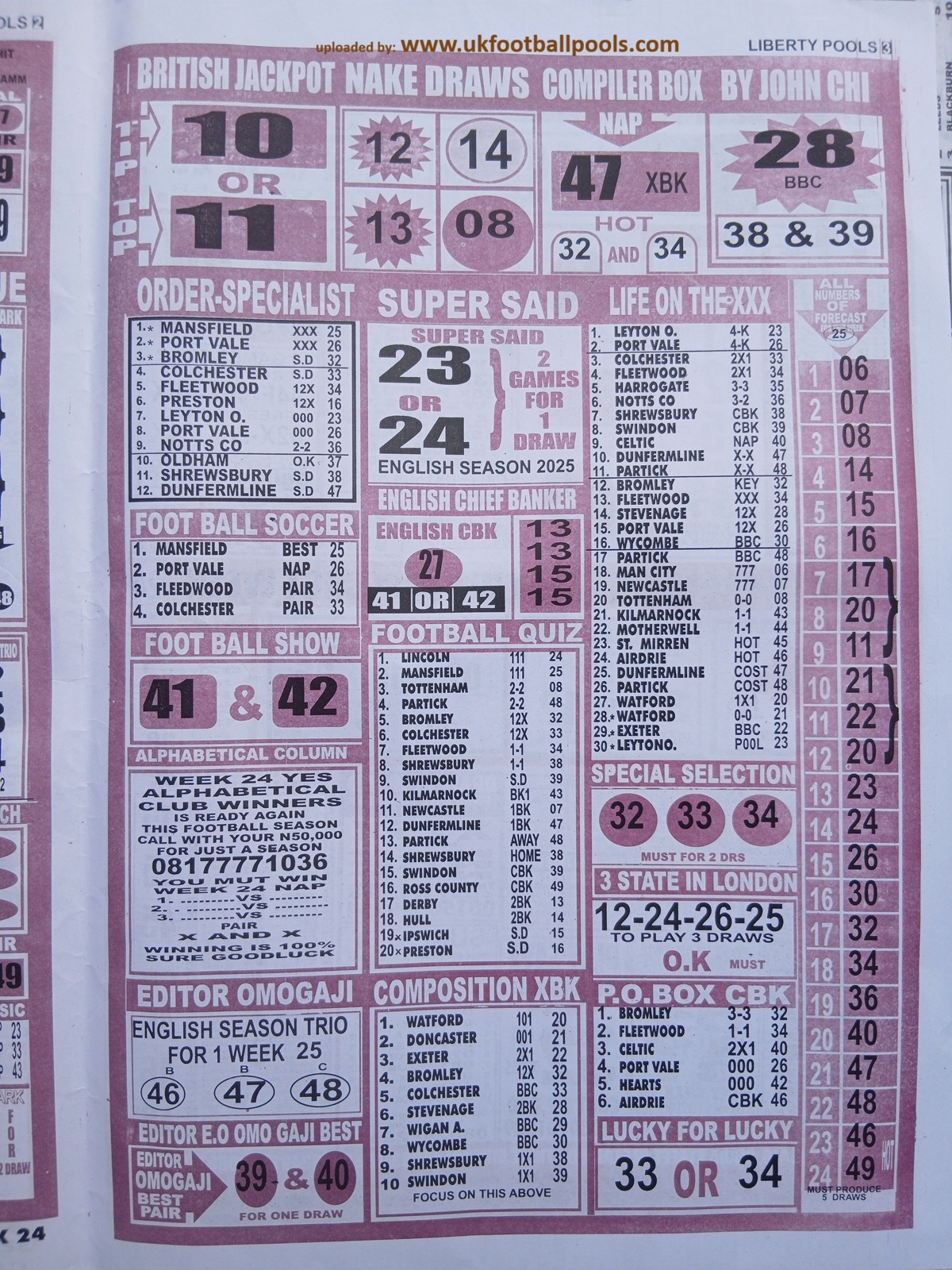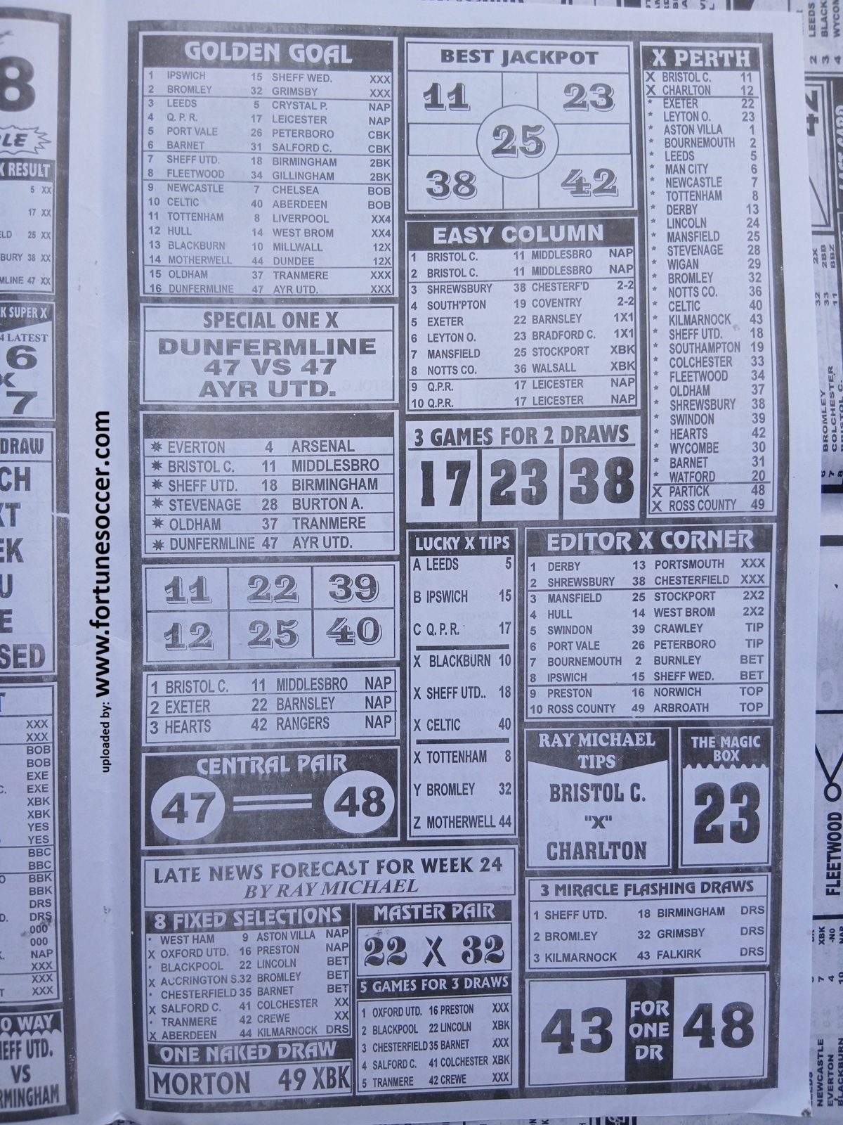 Our weekly publication of week 25 pools papers includes the following but no limited to: New soccer, liberty pools international, the way to wealth, 1.2.x weekly winners, the-x-motivators, premier soccer, cherry mansfield, the great soccer and many more football pools papers to follow in subsequent editions.