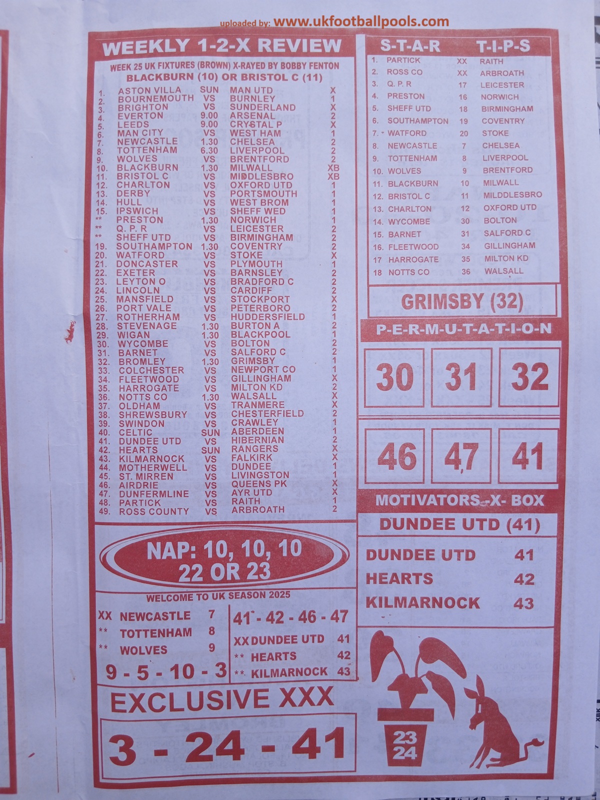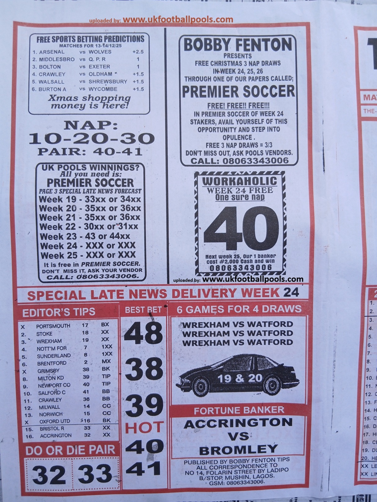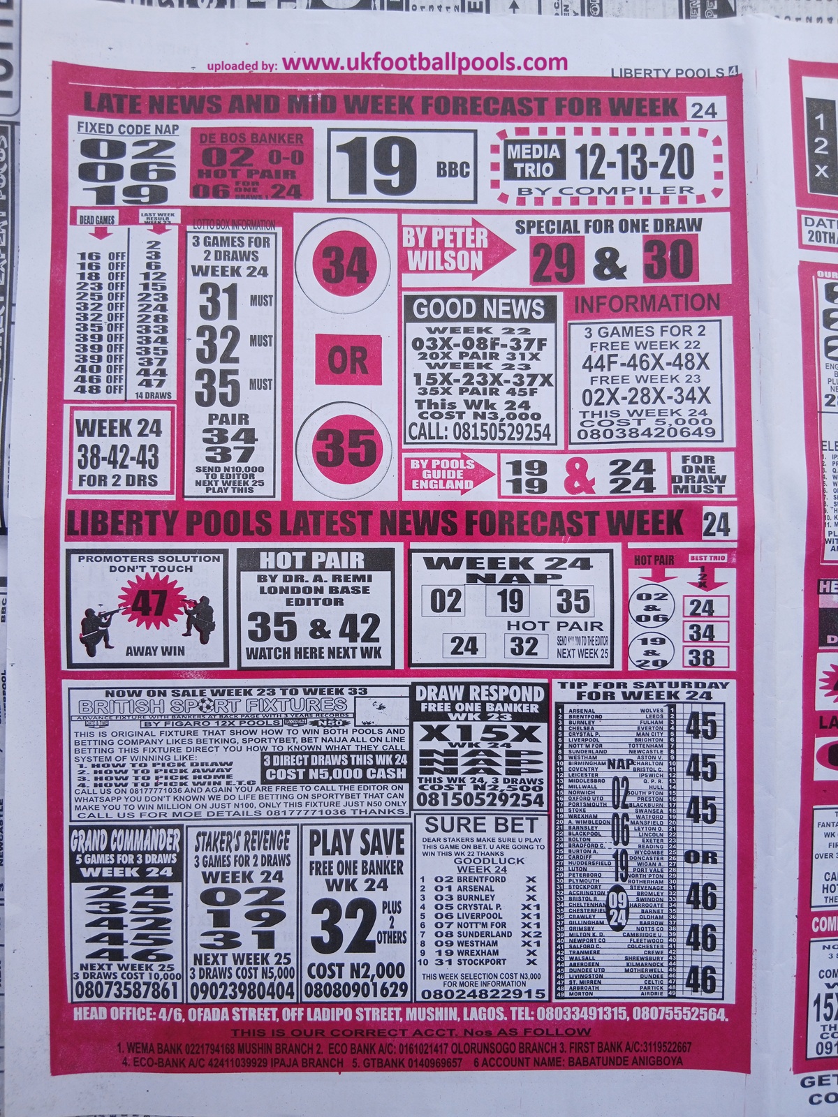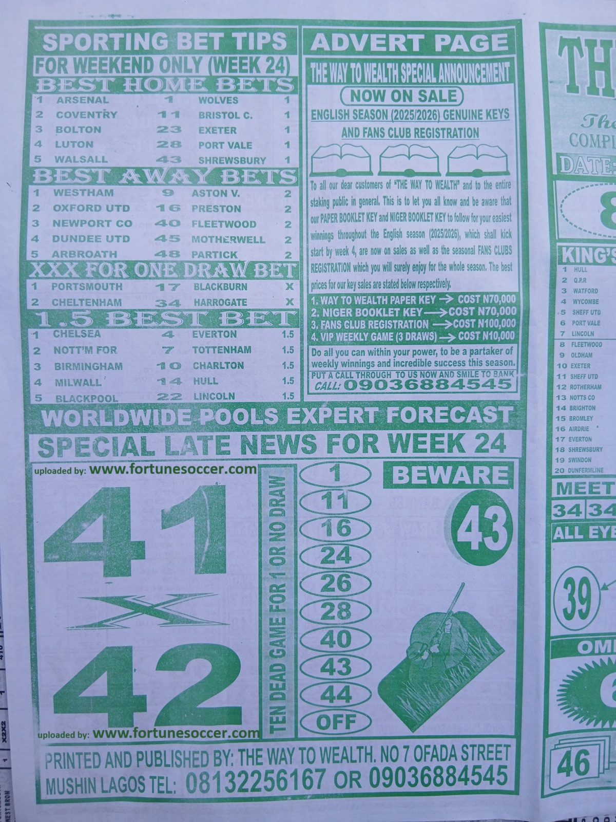 Our weekly publication of week 25 pools papers includes the following but no limited to: New soccer, liberty pools international, the way to wealth, 1.2.x weekly winners, the-x-motivators, premier soccer, cherry mansfield, the great soccer and many more football pools papers to follow in subsequent editions.