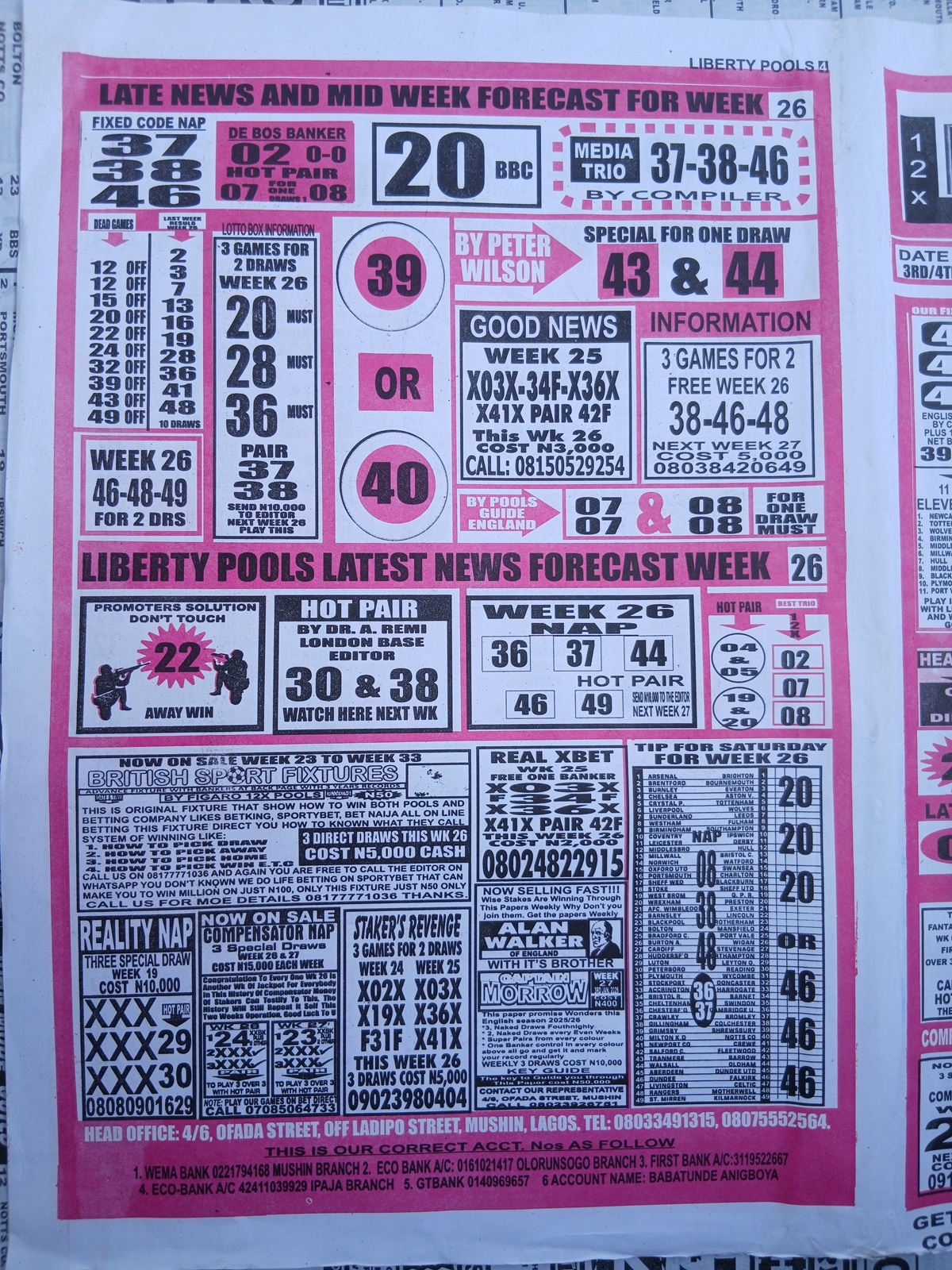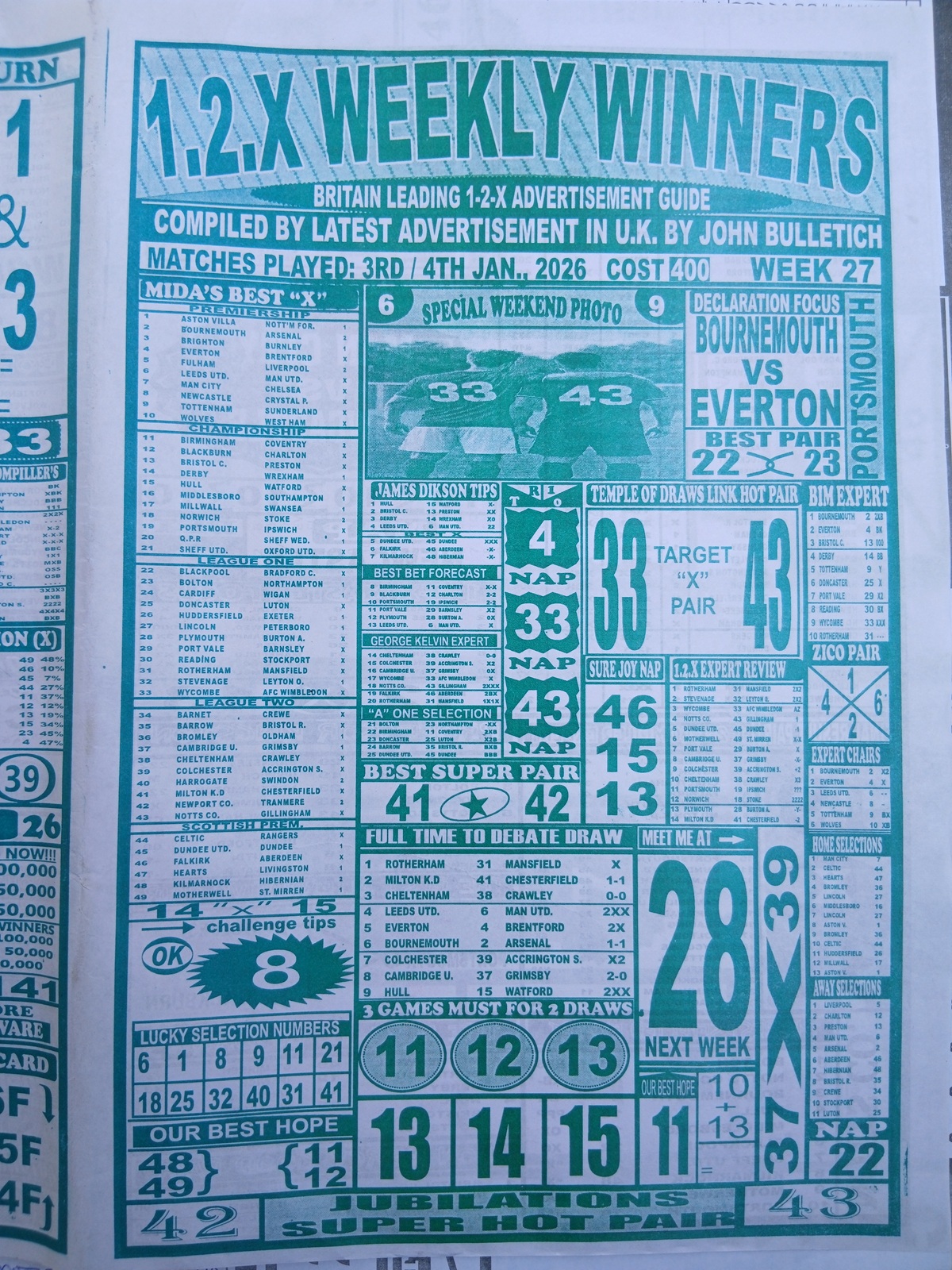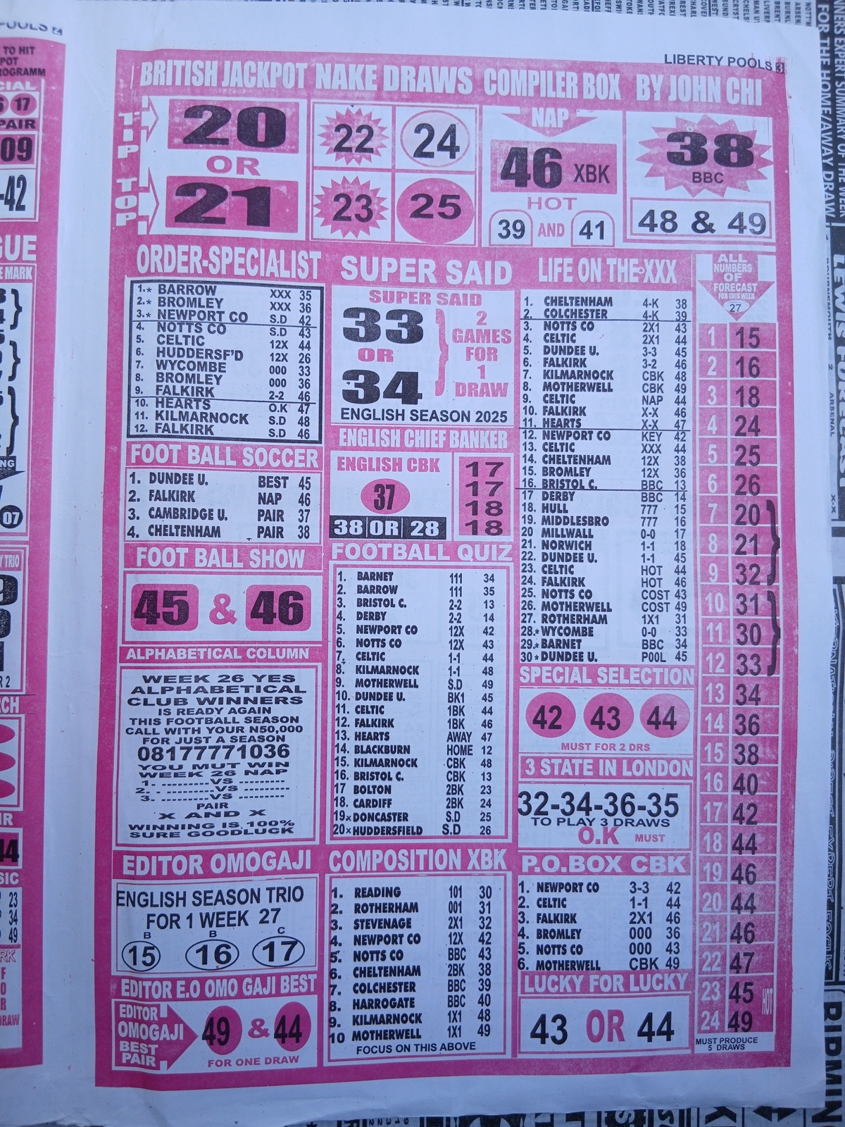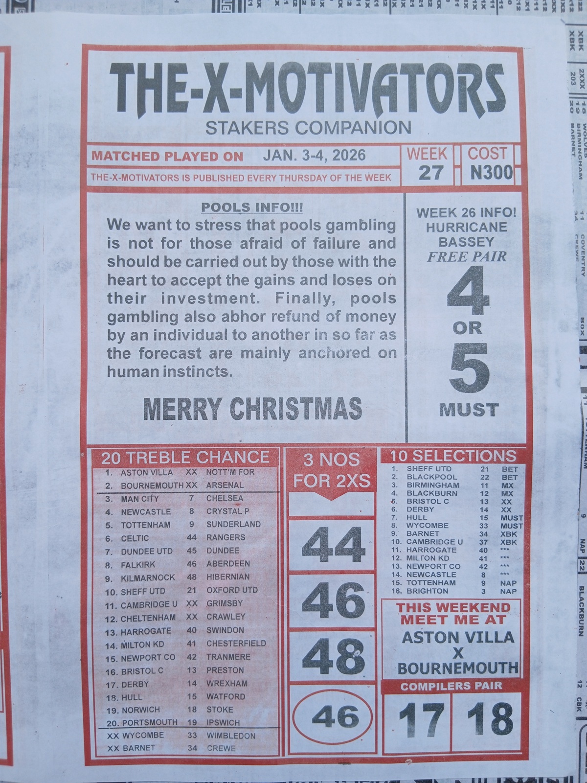 Our weekly publication of week 27 pools papers includes the following but no limited to: New soccer, liberty pools international, the way to wealth, 1.2.x weekly winners, the-x-motivators, premier soccer, cherry mansfield, the great soccer and many more football pools papers to follow in subsequent editions.
