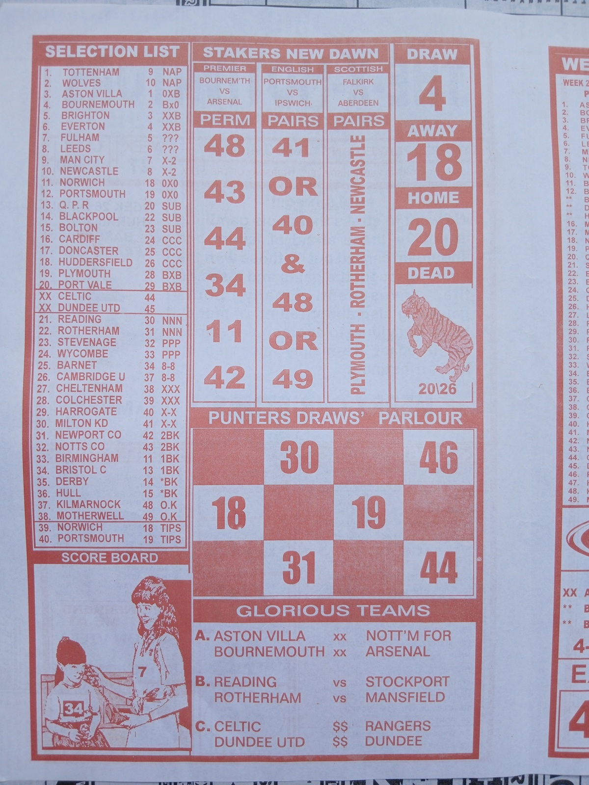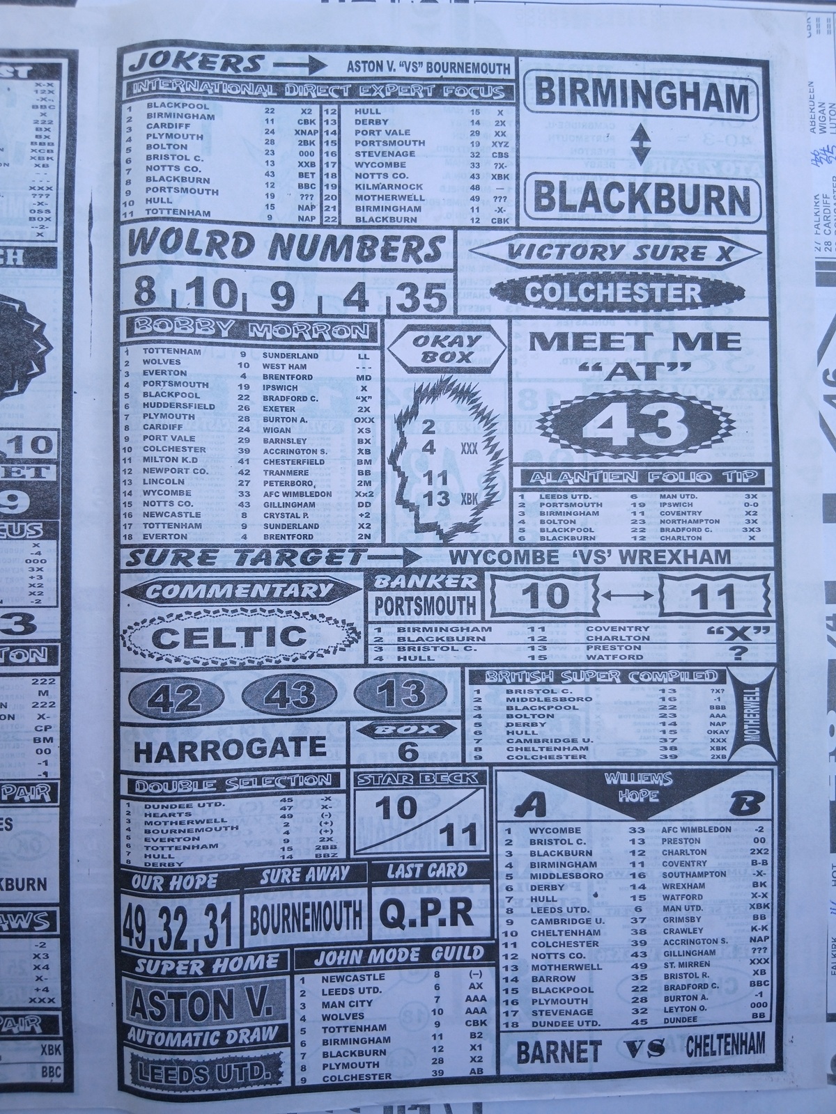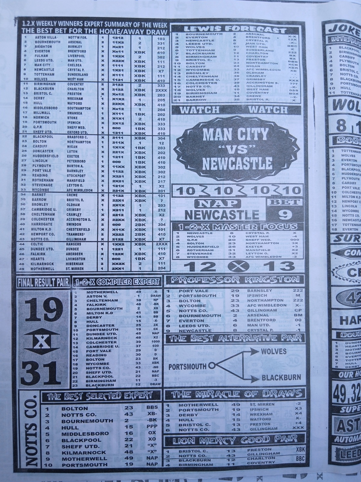 Fortune Late News Papers: Sporting telegraph, mirror punters guide, sport ‘x’ officer, soccer standard and sporting informant late news pool papers.