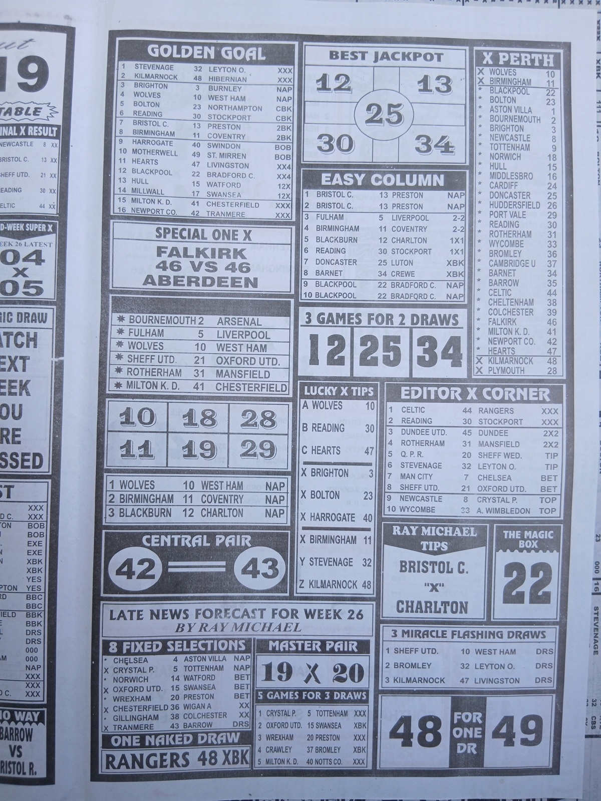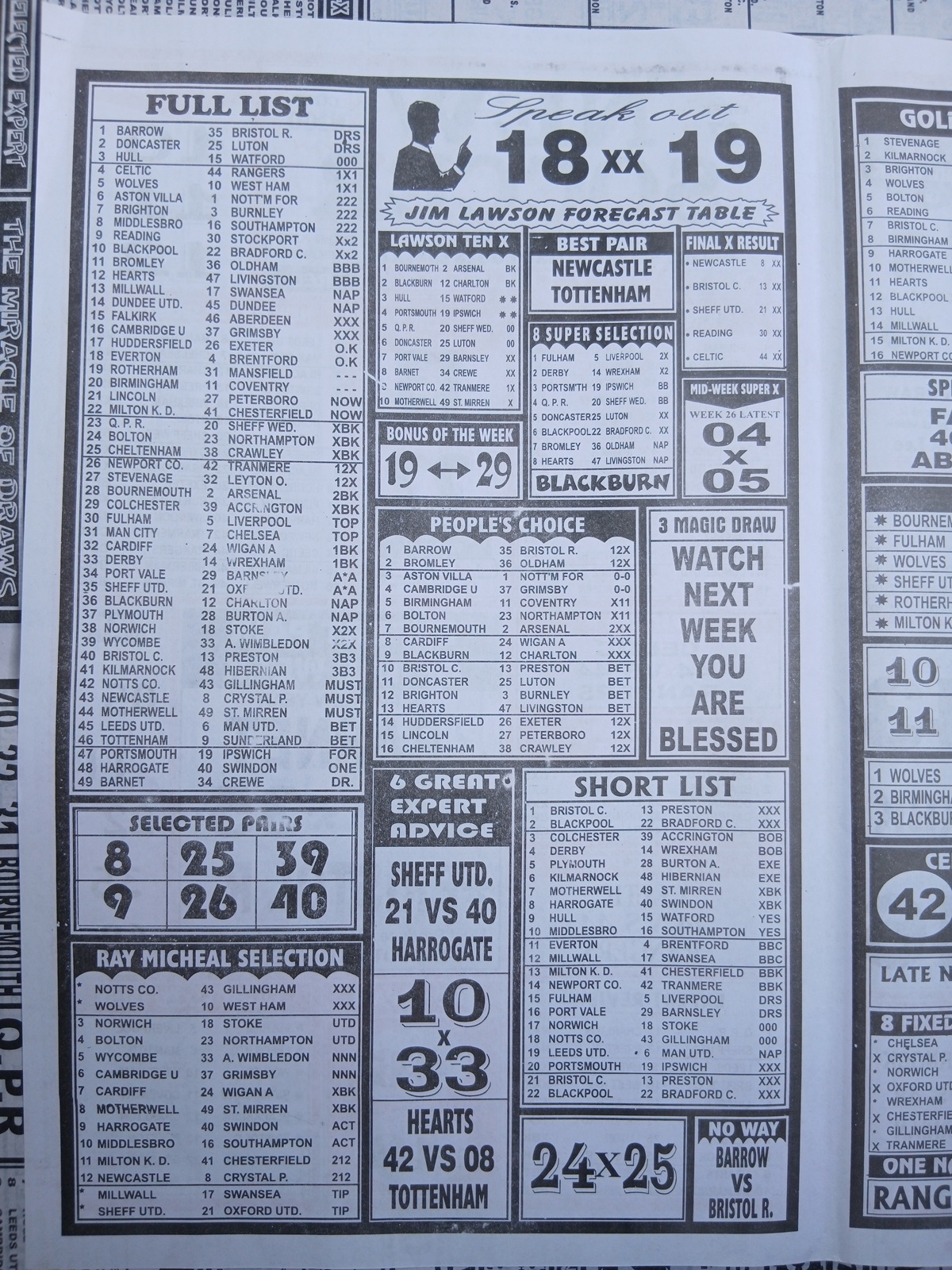 – Sporting Telegraph Pool Paper and Sport ‘X’ Officer Late News
