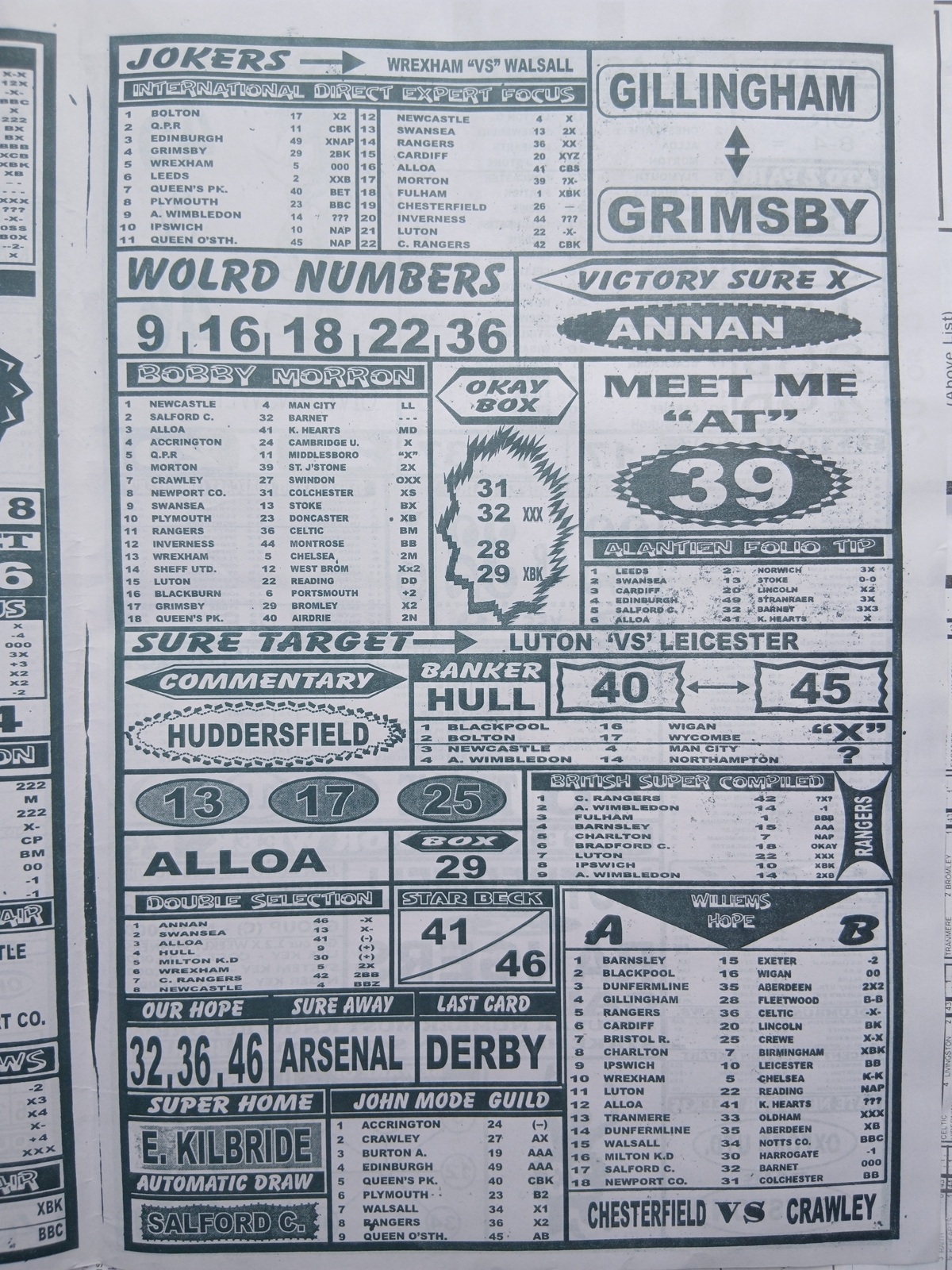 Fortune Late News Papers: Sporting telegraph, mirror punters guide, sport ‘x’ officer, soccer standard and sporting informant late news pool papers.