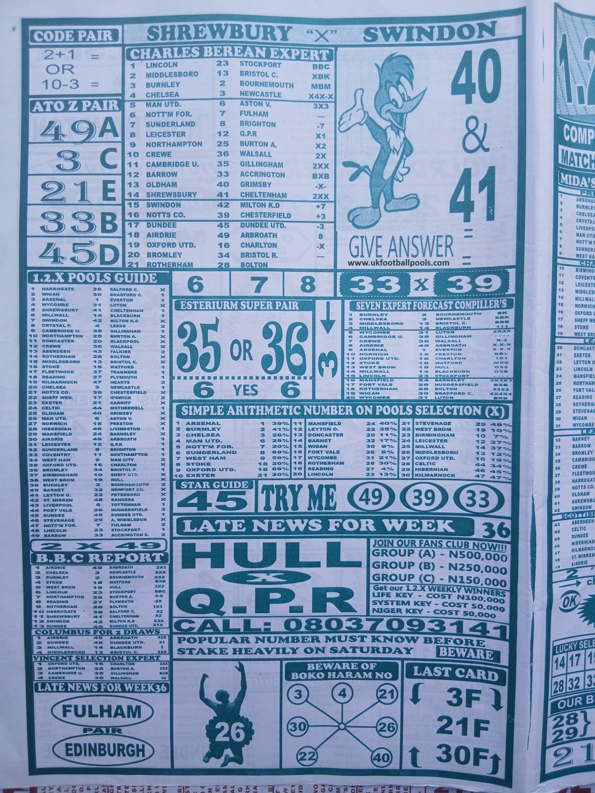 Our weekly publication of week 37 pools papers includes the following but no limited to: New soccer, liberty pools international, the way to wealth, 1.2.x weekly winners, the-x-motivators, premier soccer, cherry mansfield, the great soccer and many more football pools papers to follow in subsequent editions.