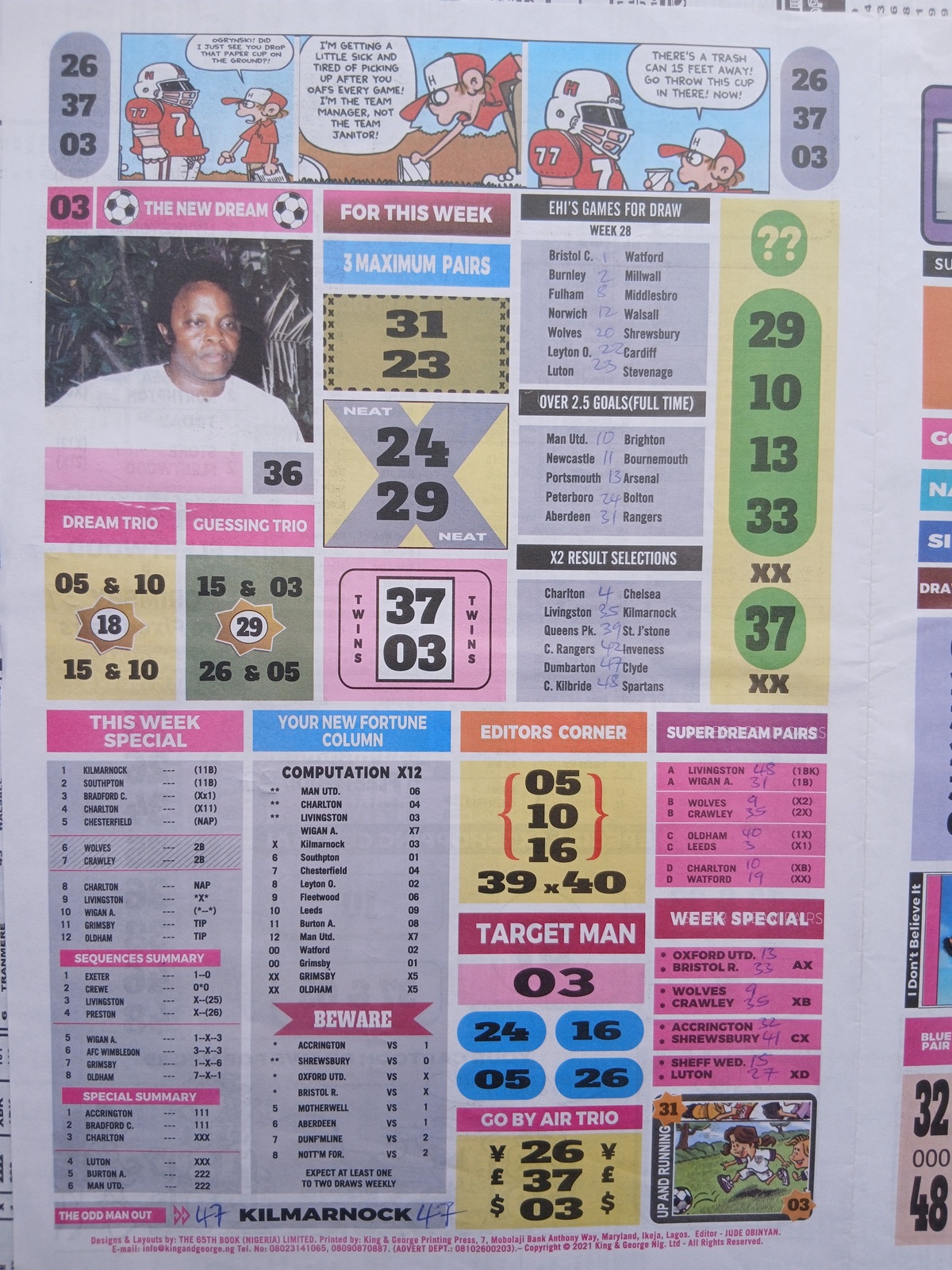 Week 29 pool late news 2026/2027: Here on Fortunesoccer late news papers, we provide you with current pool late news papers for this week 29 such as Bigwin Soccer, Dream International Research, Fortune ‘X’ Matrix, Dream International Fixtures, Happy Joe and Pools Telegraph. These papers all come with authentic pools late news for week 29 to round up and guide punters in their weekly forecast for the week! Also you can use the links below on our website, to get a copy of CBK Press pools papers. Stay Put!