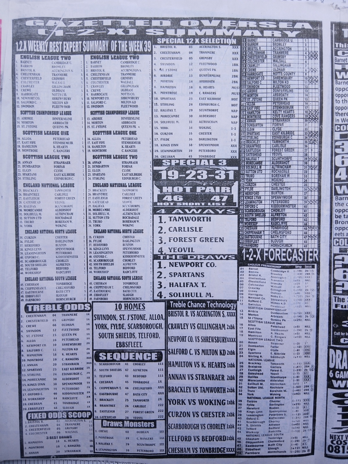 Here on Fortune Soccer, we pride ourselves on delivering accurate, timely, and late news football pools content. Our team provides you with pools papers published (updated) every week 39, such as Sport X Officer, Sporting Informant, Sporting Telegraph, Soccer X Standard and Mirror Punters Guide International, this provides you with data-driven insights with insider knowledge to give you an edge on winning the football pools with current and latest pools late news information.