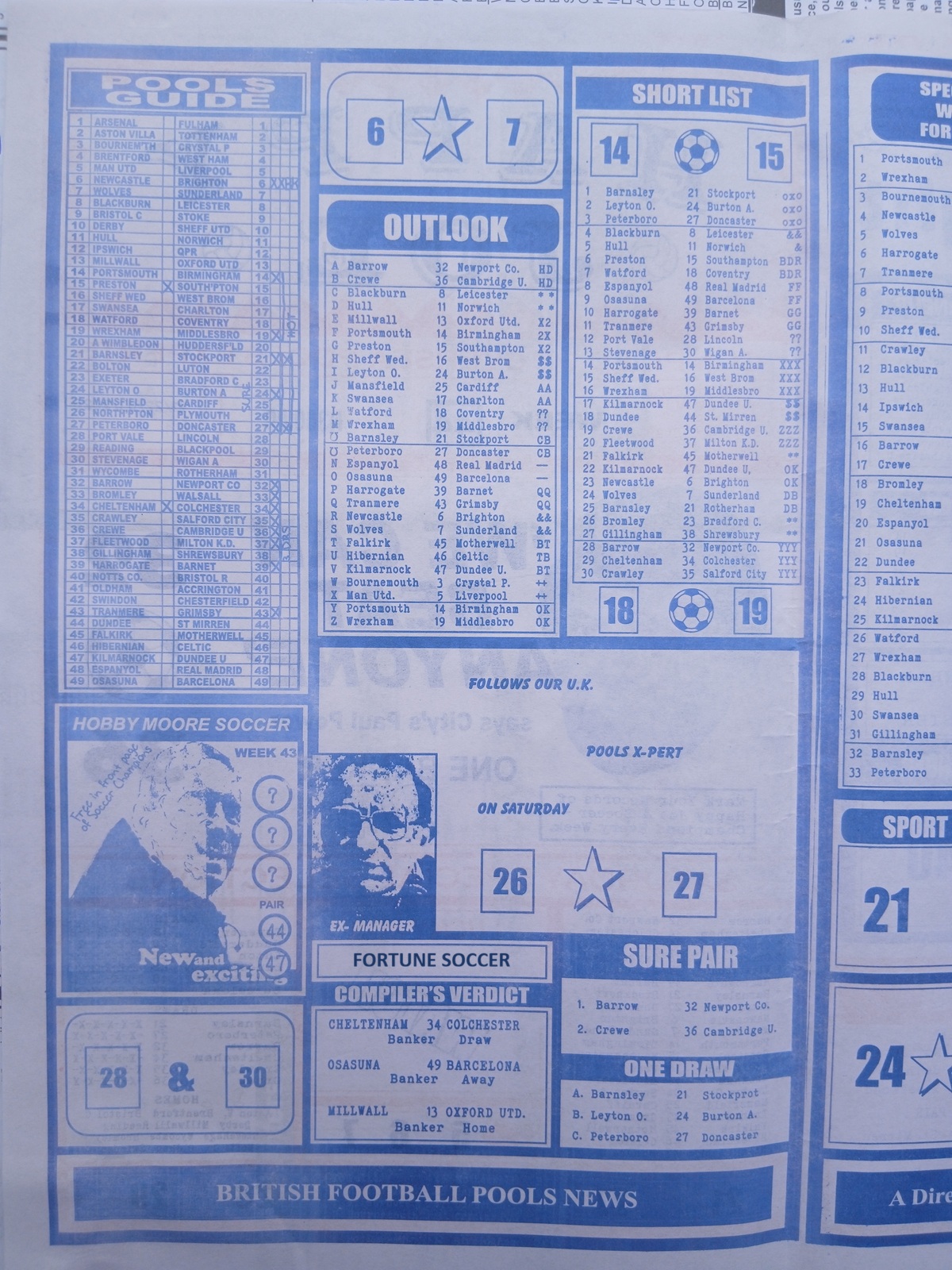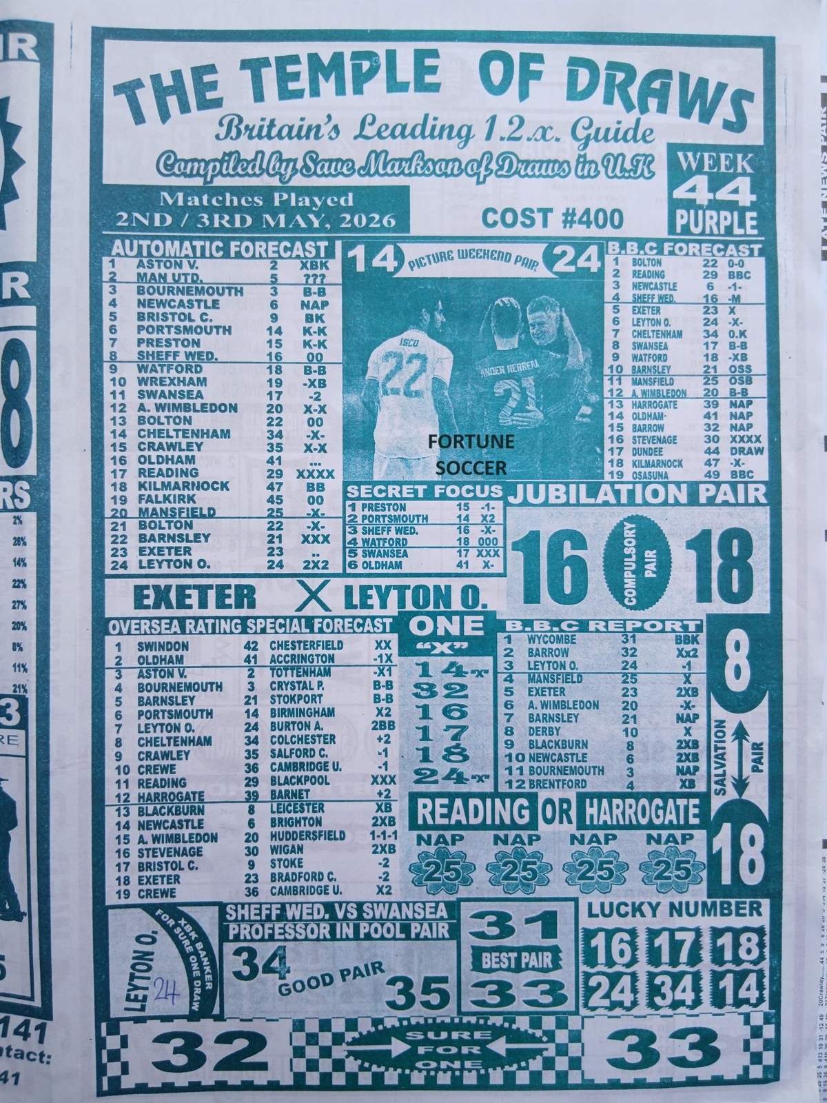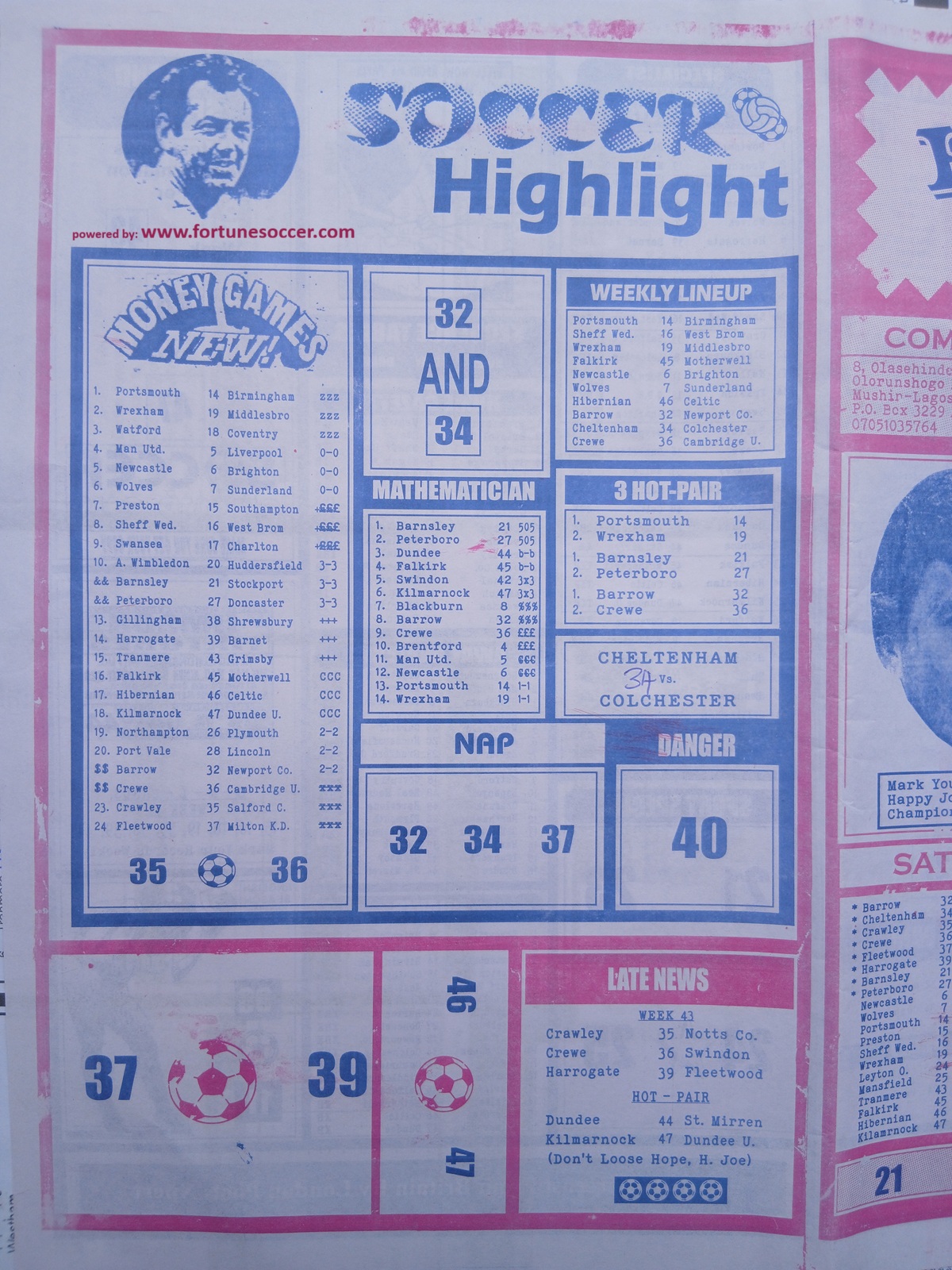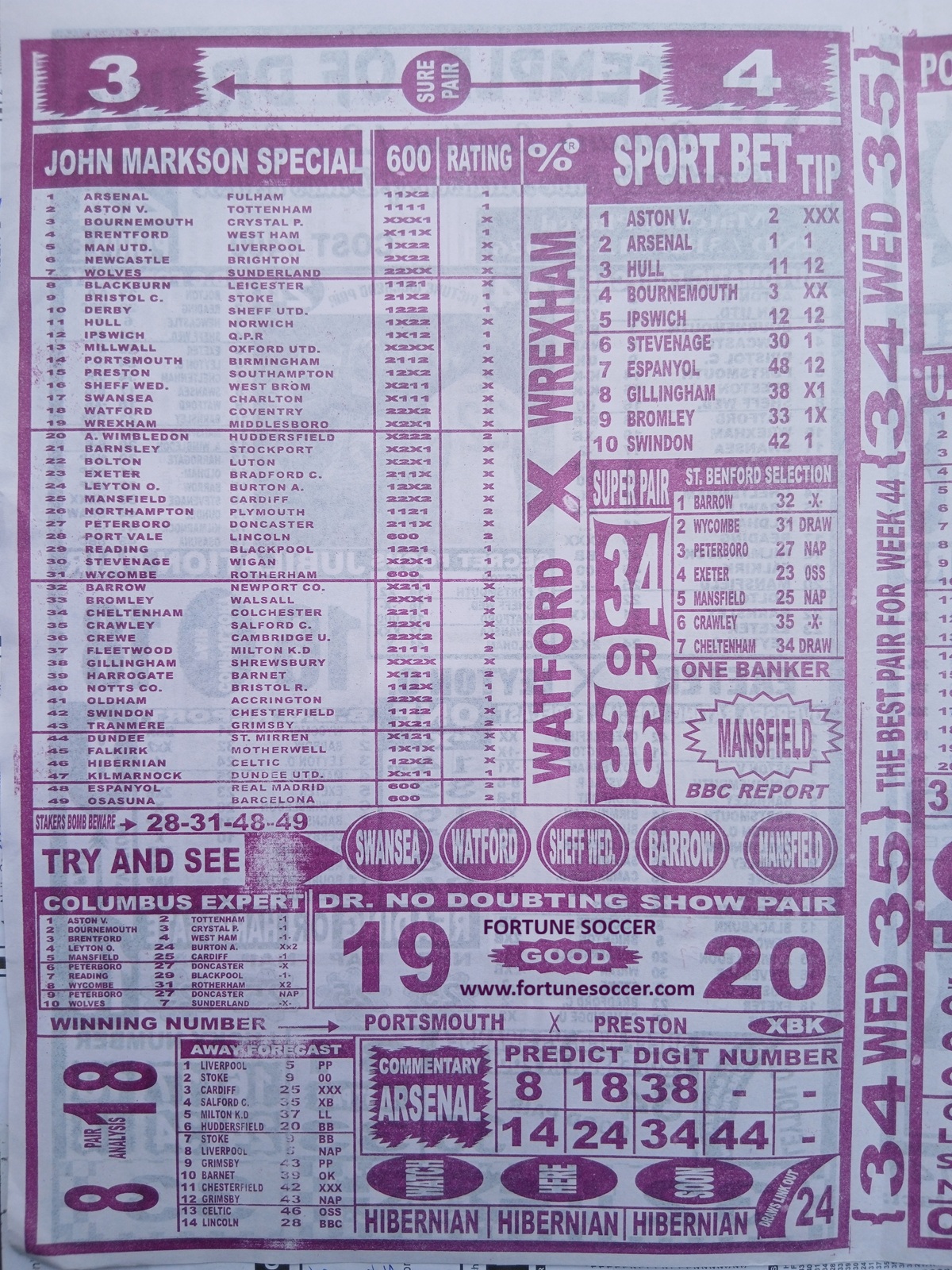 Football pool late news papers for this week 44 latest pool papers for this week, football pool analysis papers and fortune pool papers for this week here on fortunesoccer.com
