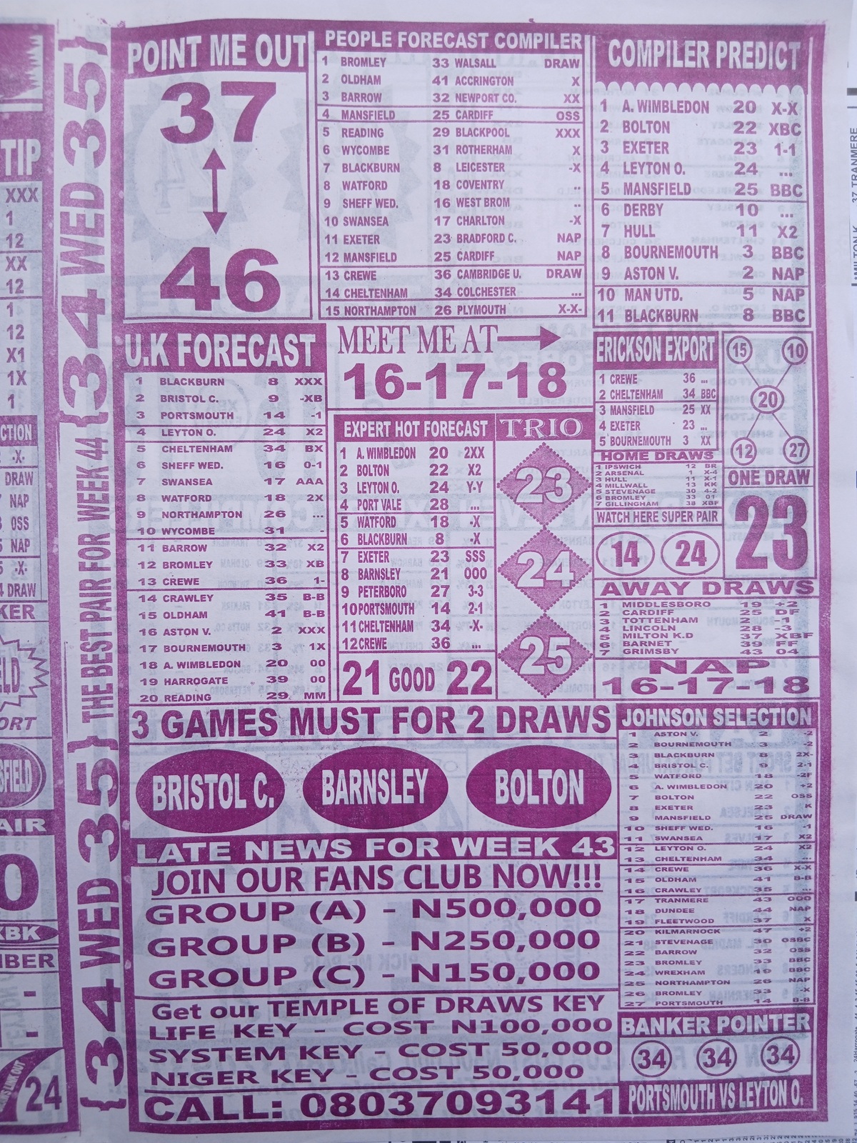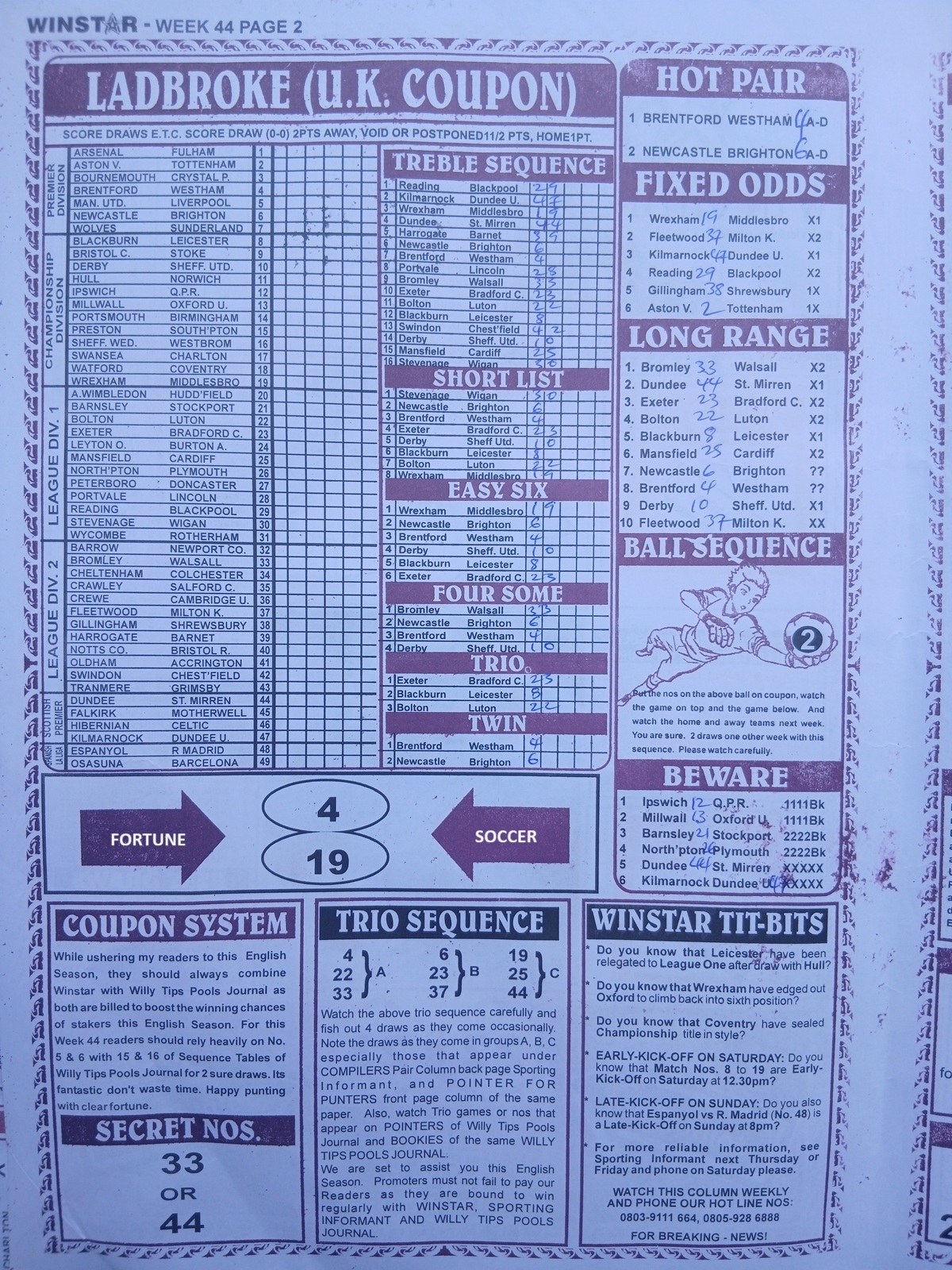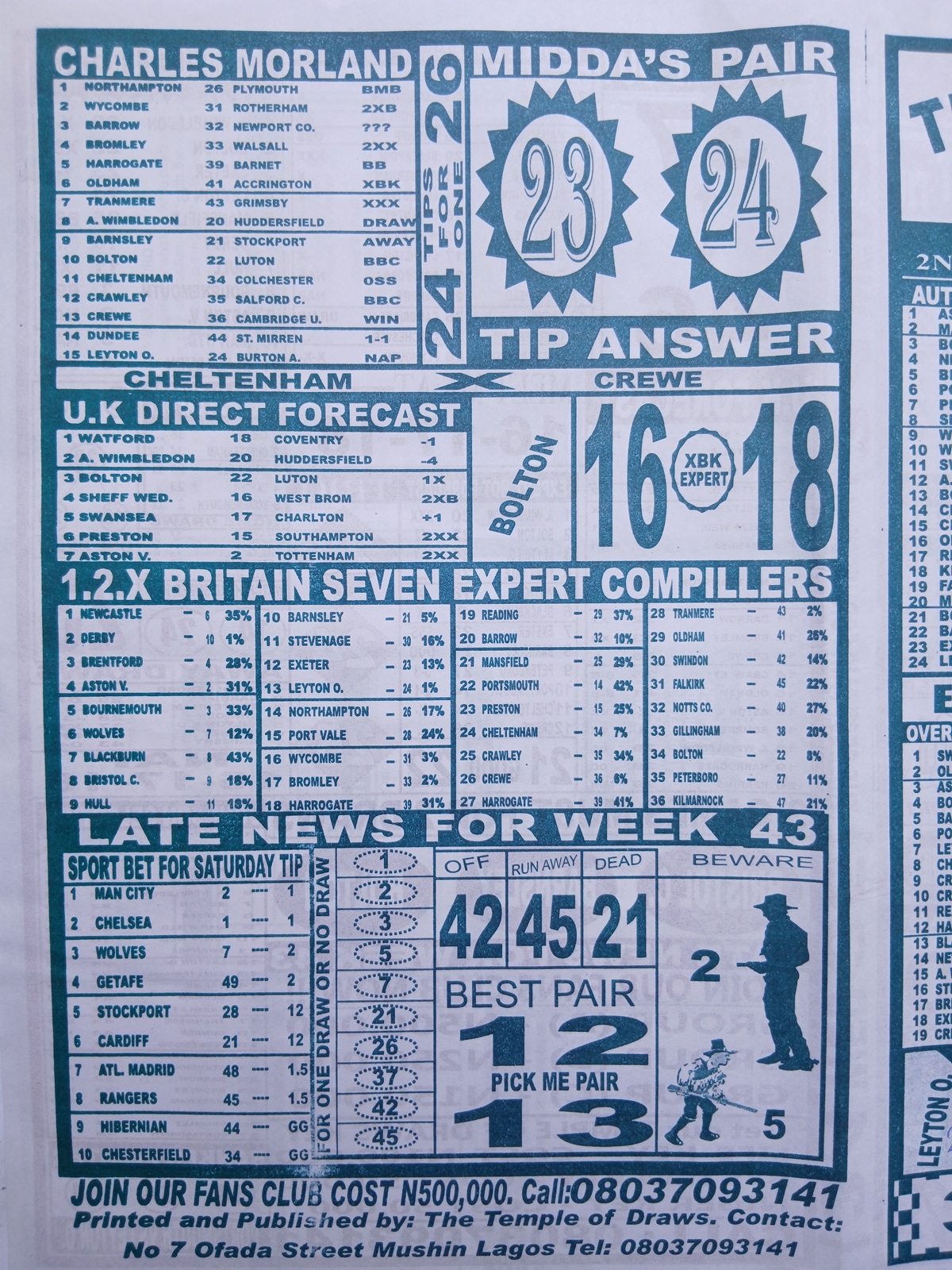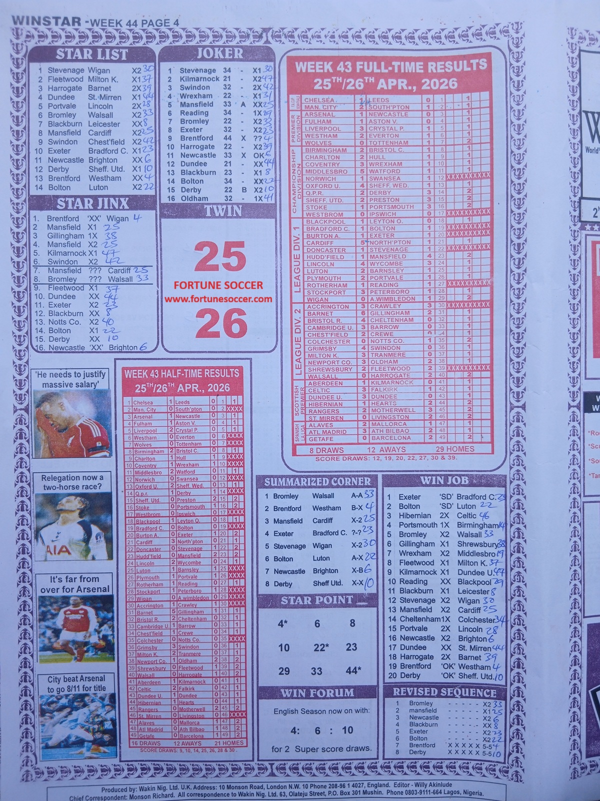 Football pool late news papers for this week 44 latest pool papers for this week, football pool analysis papers and fortune pool papers for this week here on fortunesoccer.com