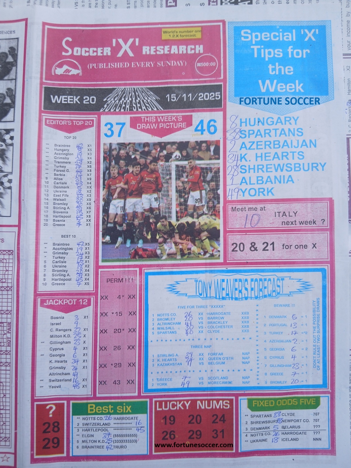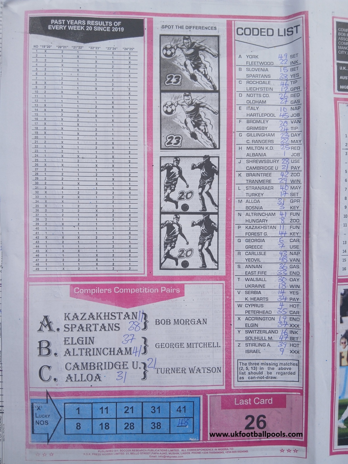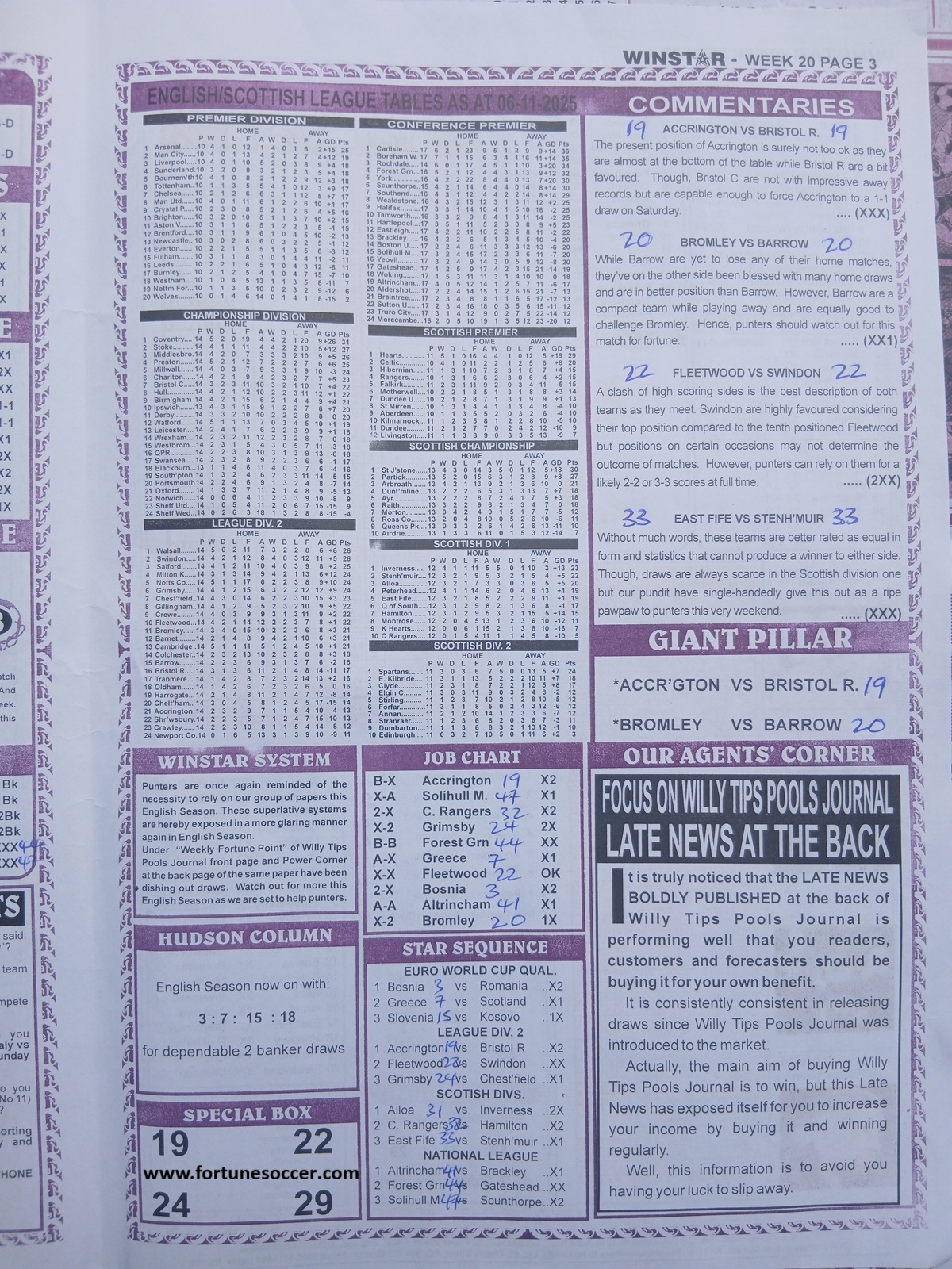 Week 20 rsk papers 2025/2026: Welcome to fortune soccer rsk papers here we provide you with the latest and current RSK papers this week 20: Soccer X Research, Bob Morton, Capital International, WinStar Pool Paper, Bigwin Soccer Pool Paper, Pools Telegraph and pool papers from other publishers such as Dream International Research, Fortune ‘X’ Matrix, Special Advance Fixtures, Right On Fixtures, Happy Joe and Dream International Fixtures.