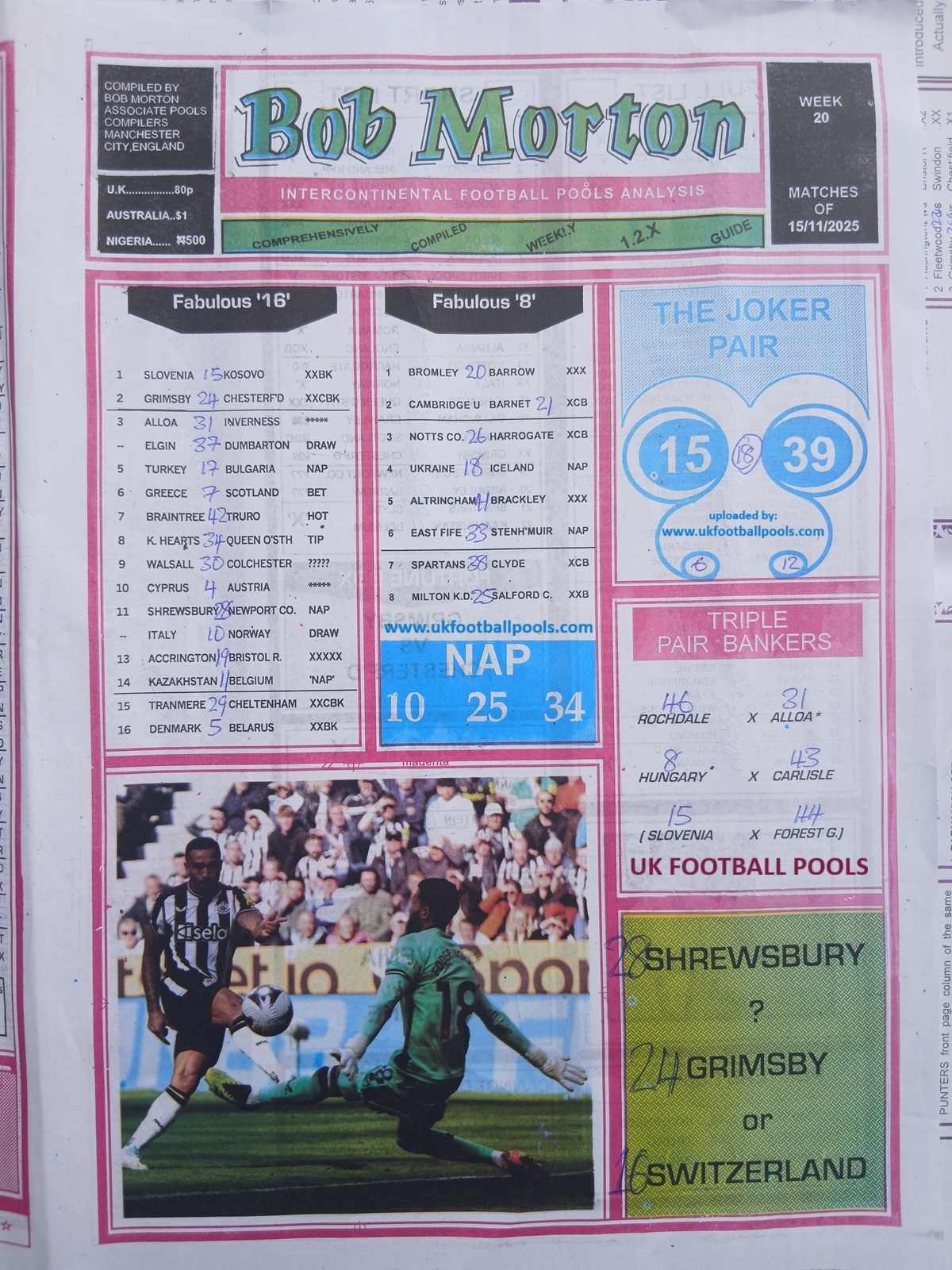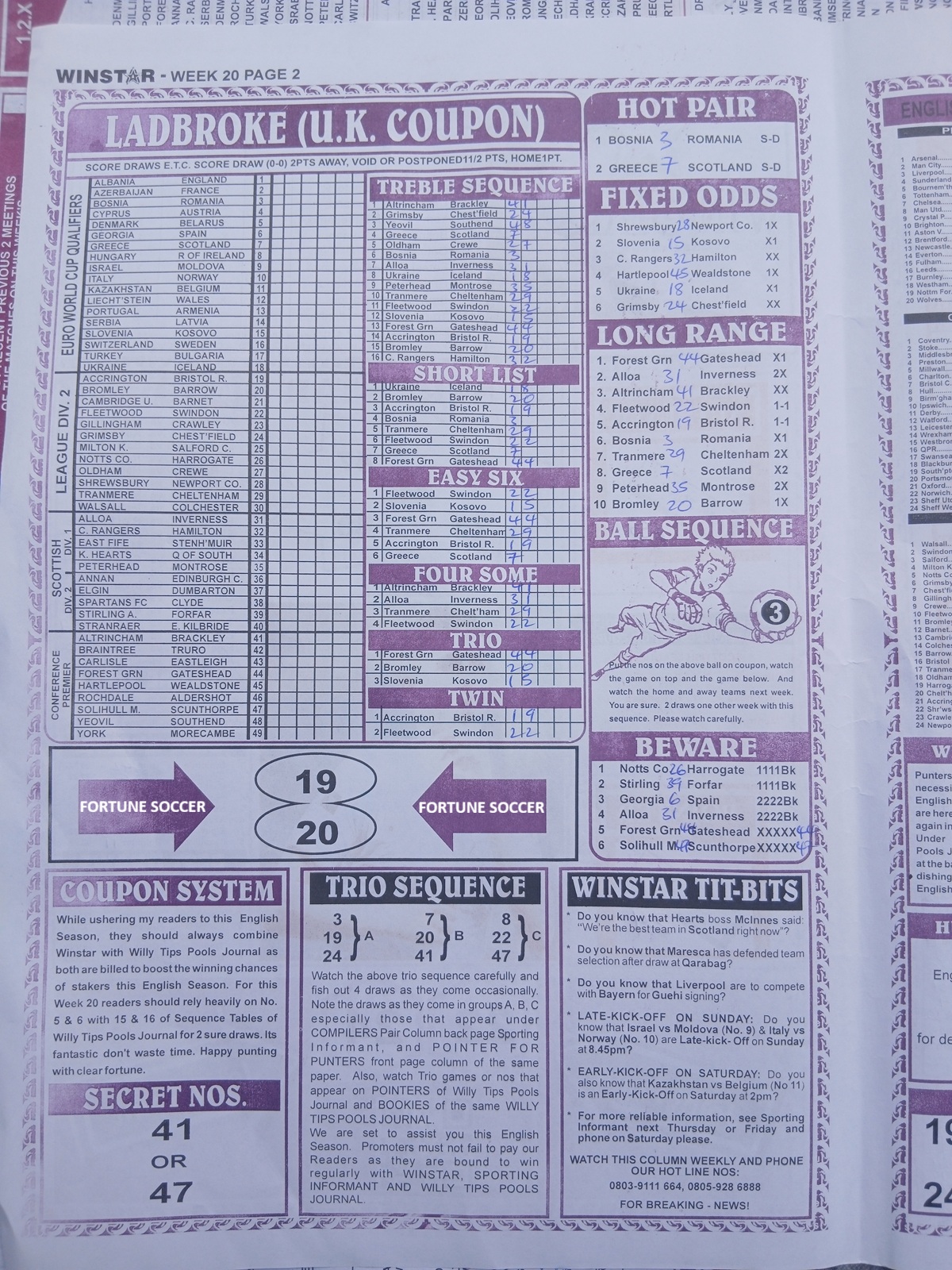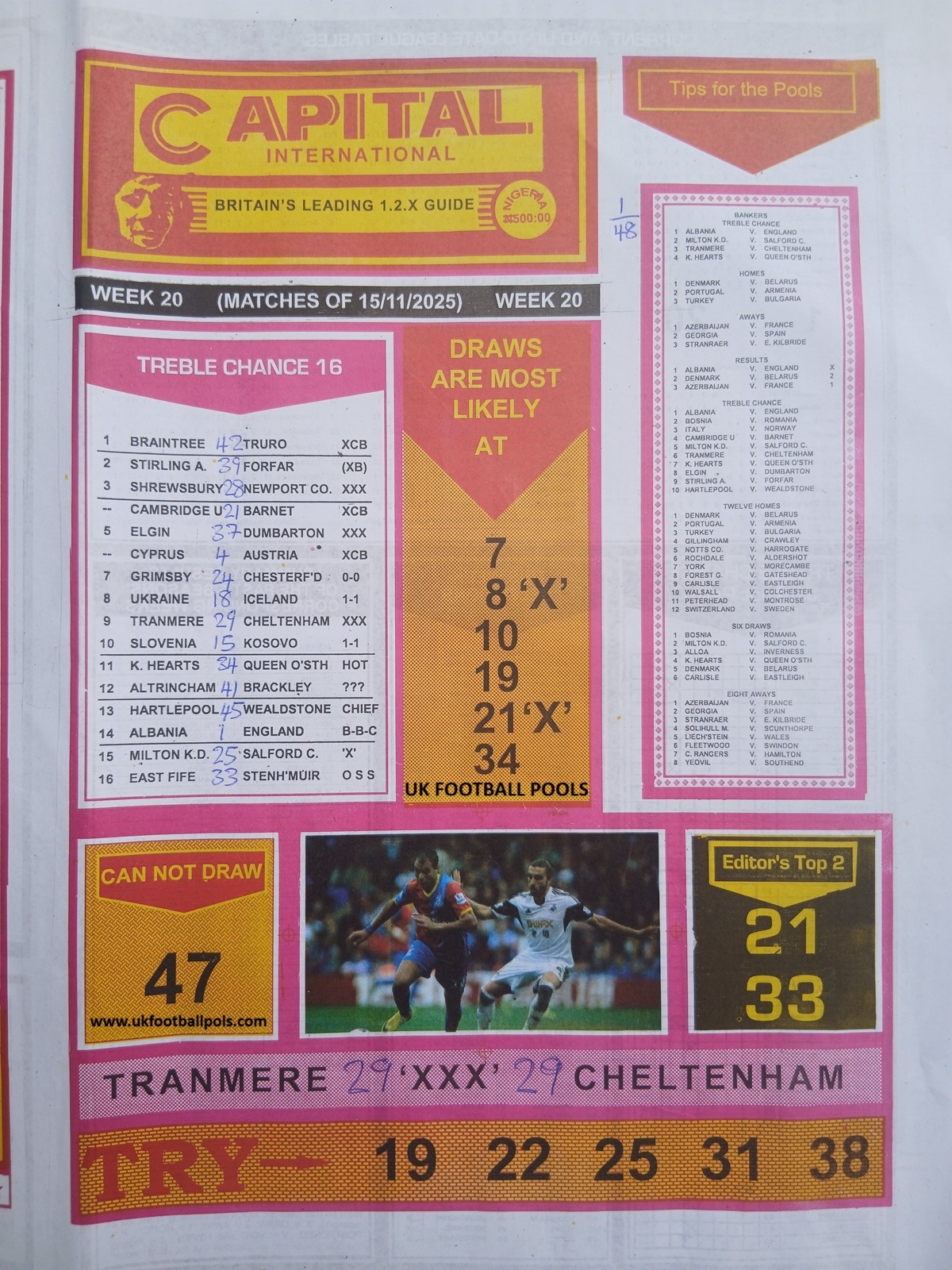 Week 20 rsk papers 2025/2026: Welcome to fortune soccer rsk papers here we provide you with the latest and current RSK papers this week 20: Soccer X Research, Bob Morton, Capital International, WinStar Pool Paper, Bigwin Soccer Pool Paper, Pools Telegraph and pool papers from other publishers such as Dream International Research, Fortune ‘X’ Matrix, Special Advance Fixtures, Right On Fixtures, Happy Joe and Dream International Fixtures.