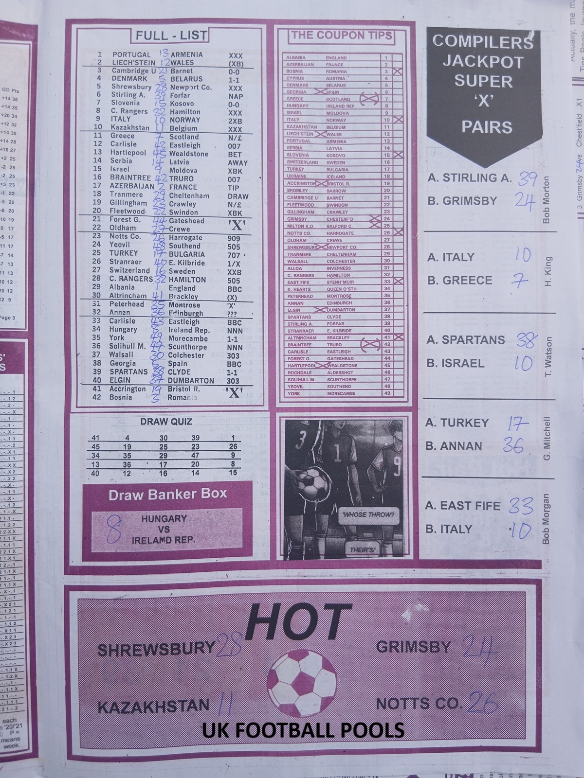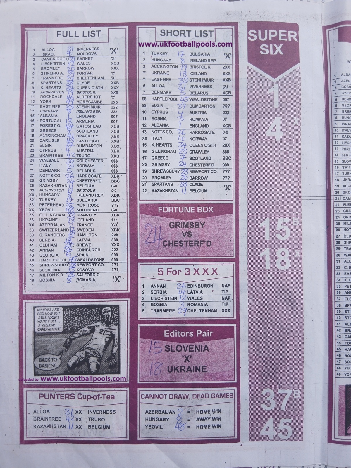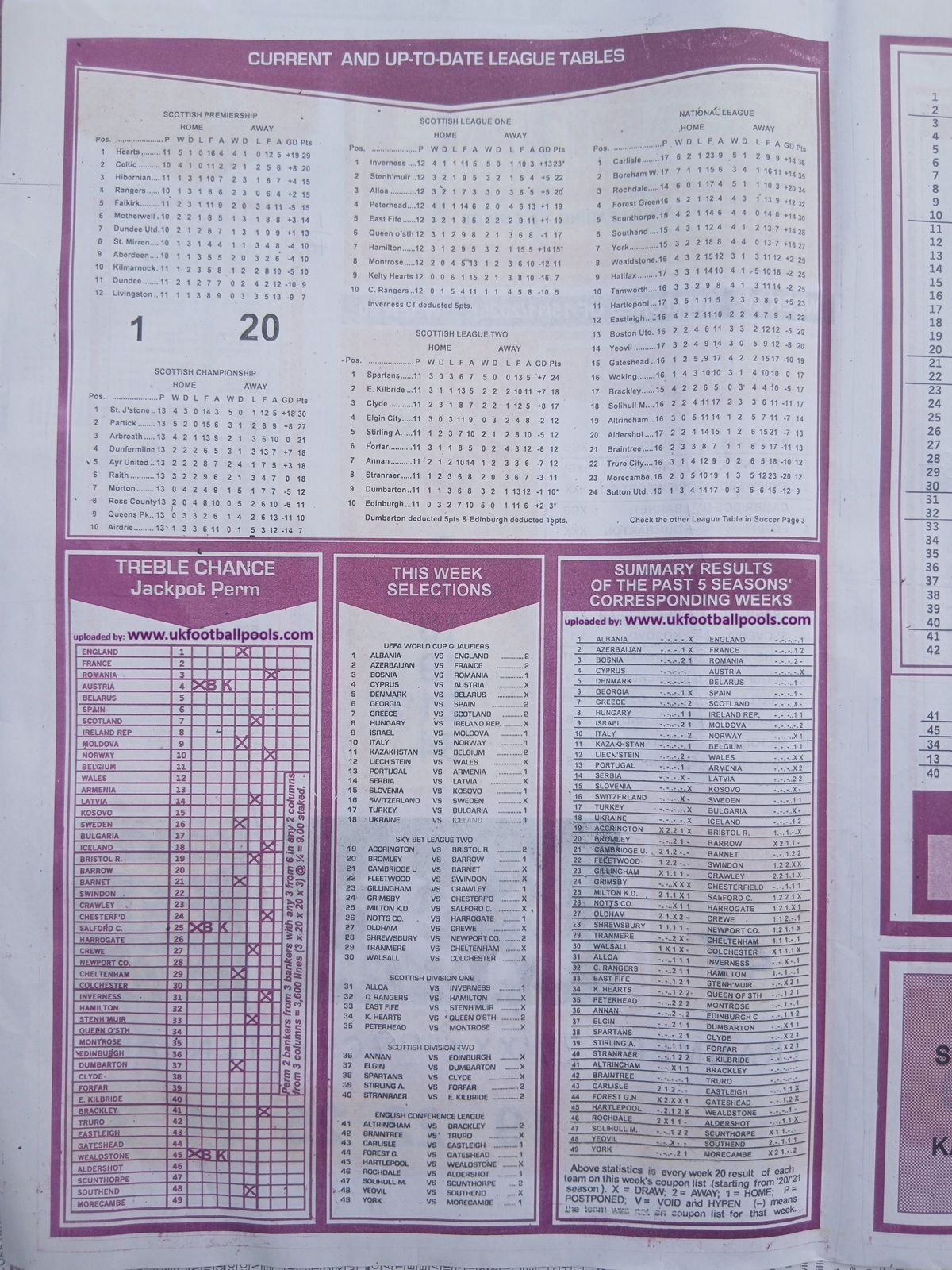 – Weekly Telegraph Pools Papers: Final results pool paper, the new dream late news, weekly telegraph pool papers