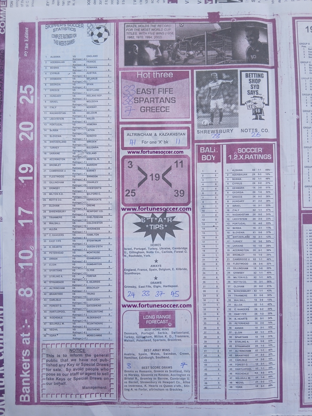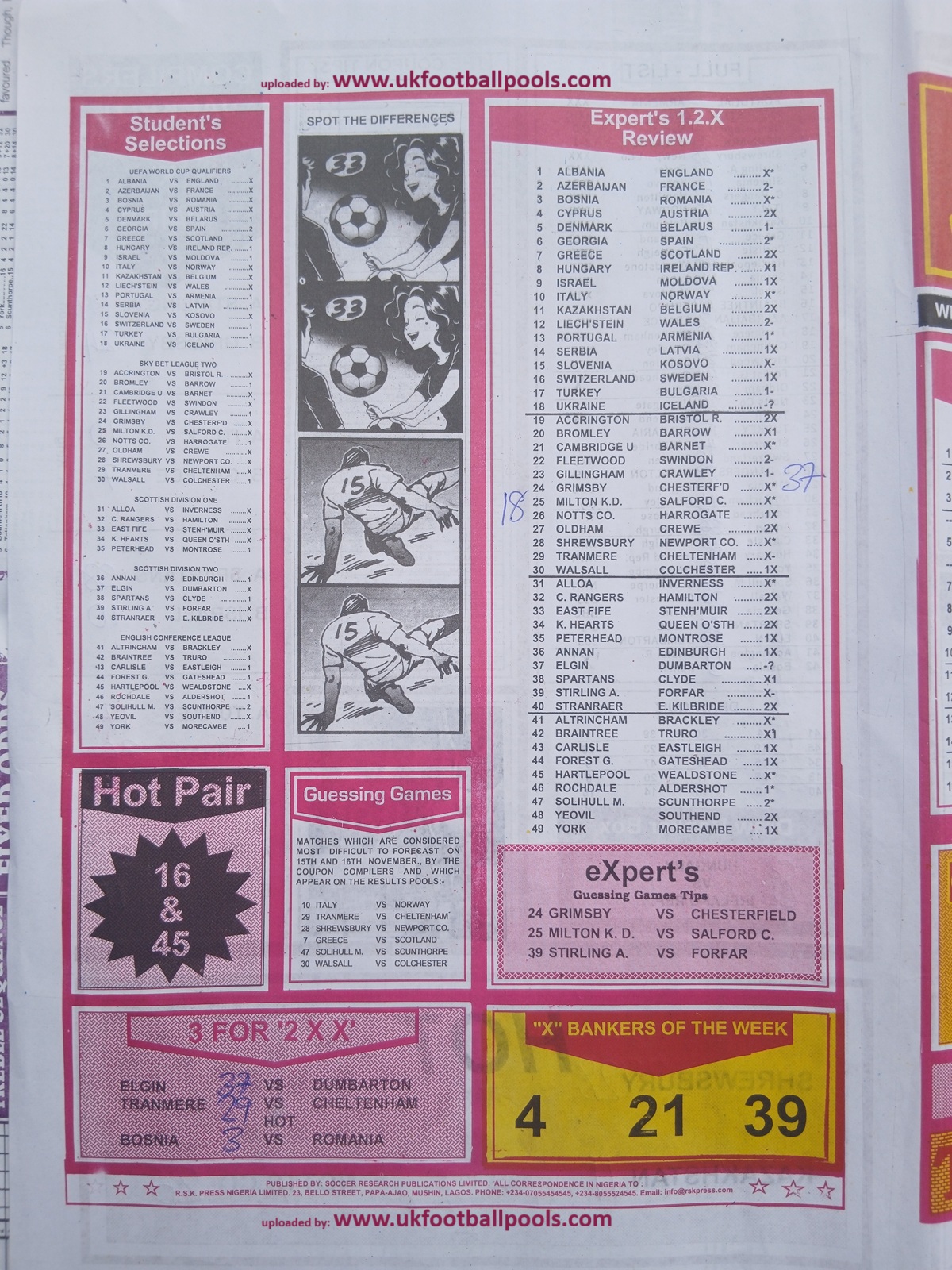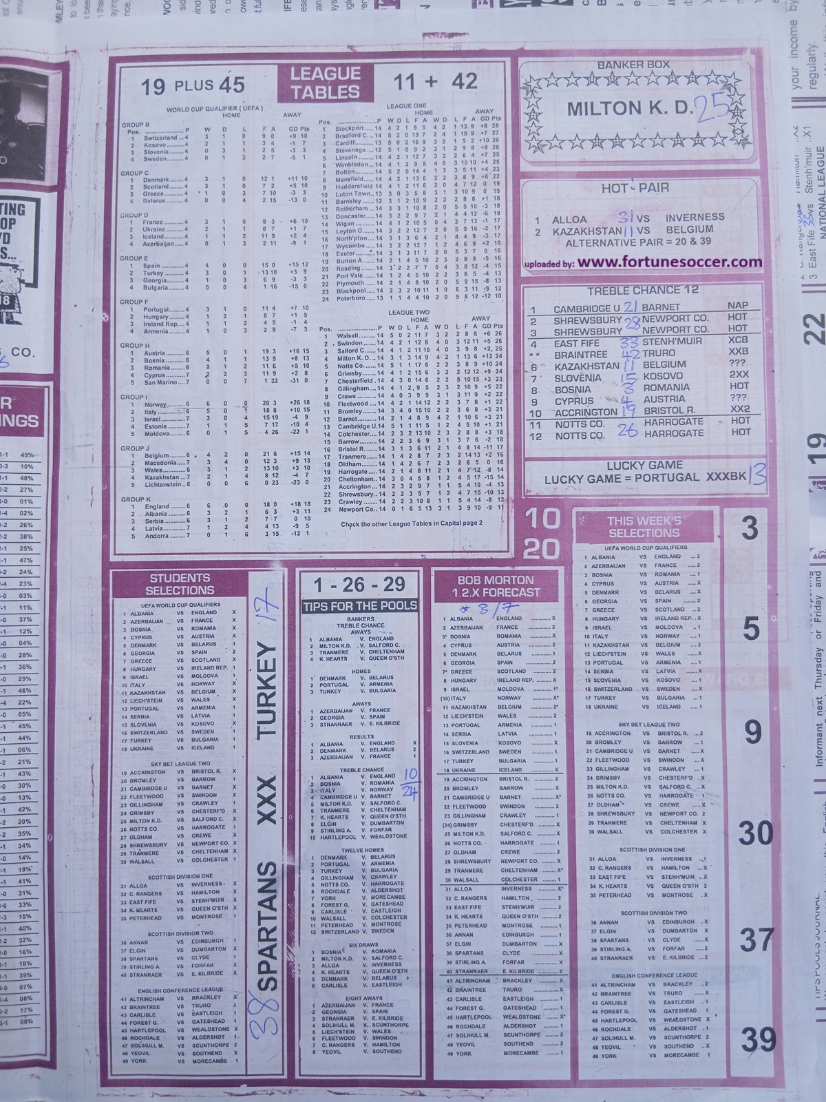 – Fortune Late News Papers: Sporting telegraph, Sport ‘x’ officer, mirror international, soccer standard and sporting informant late news pool papers