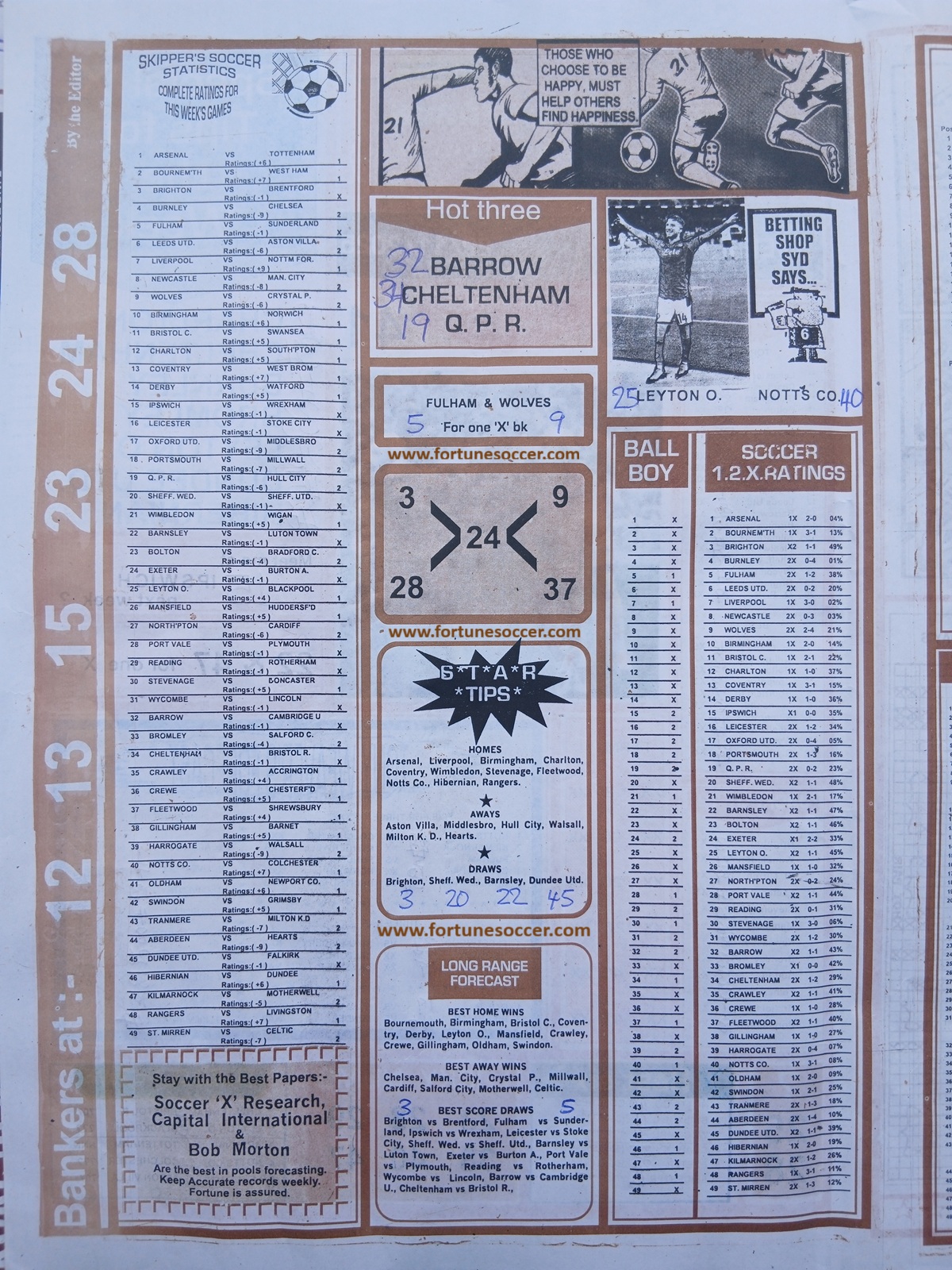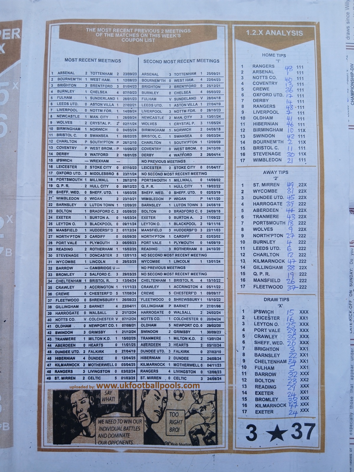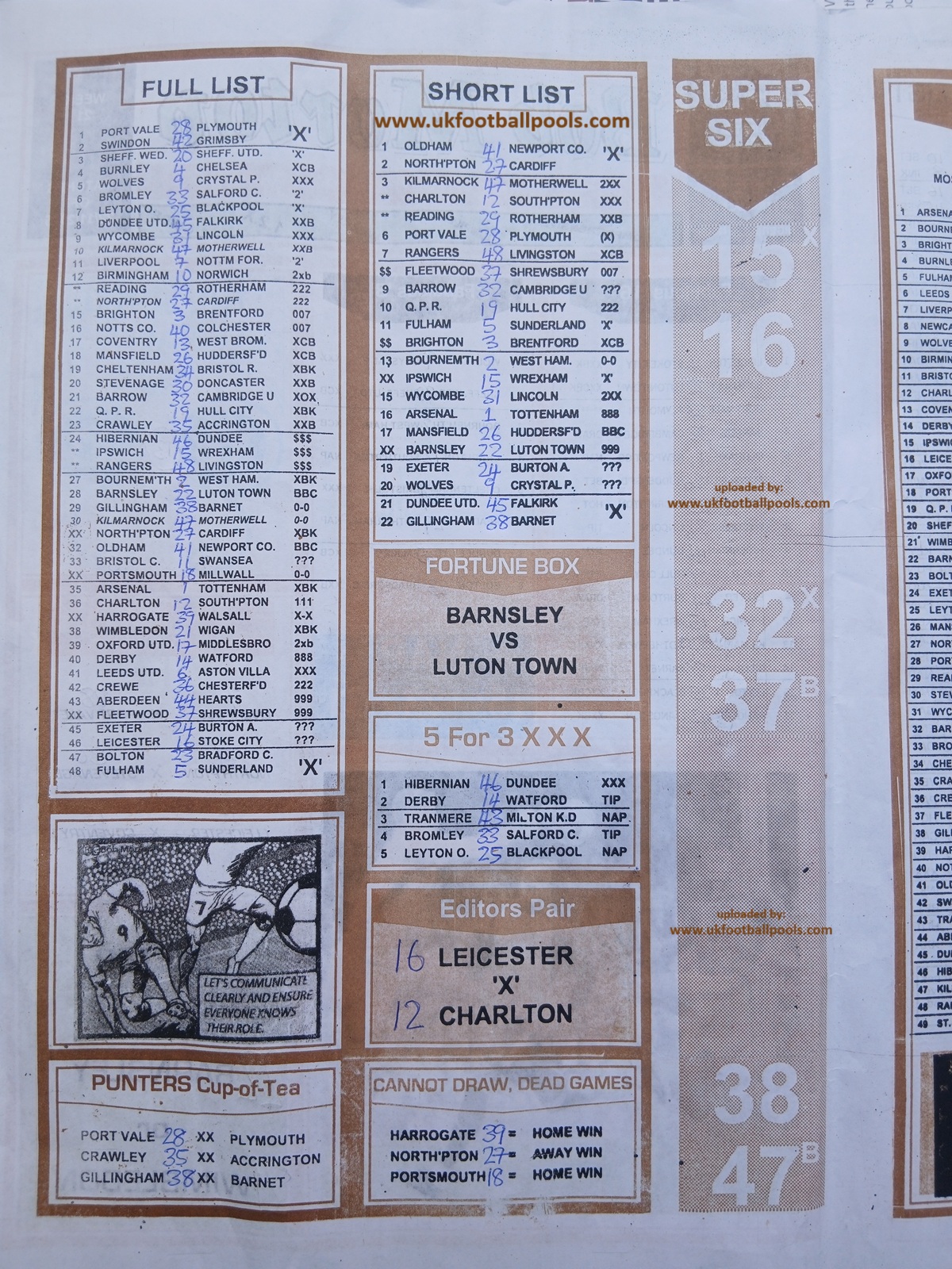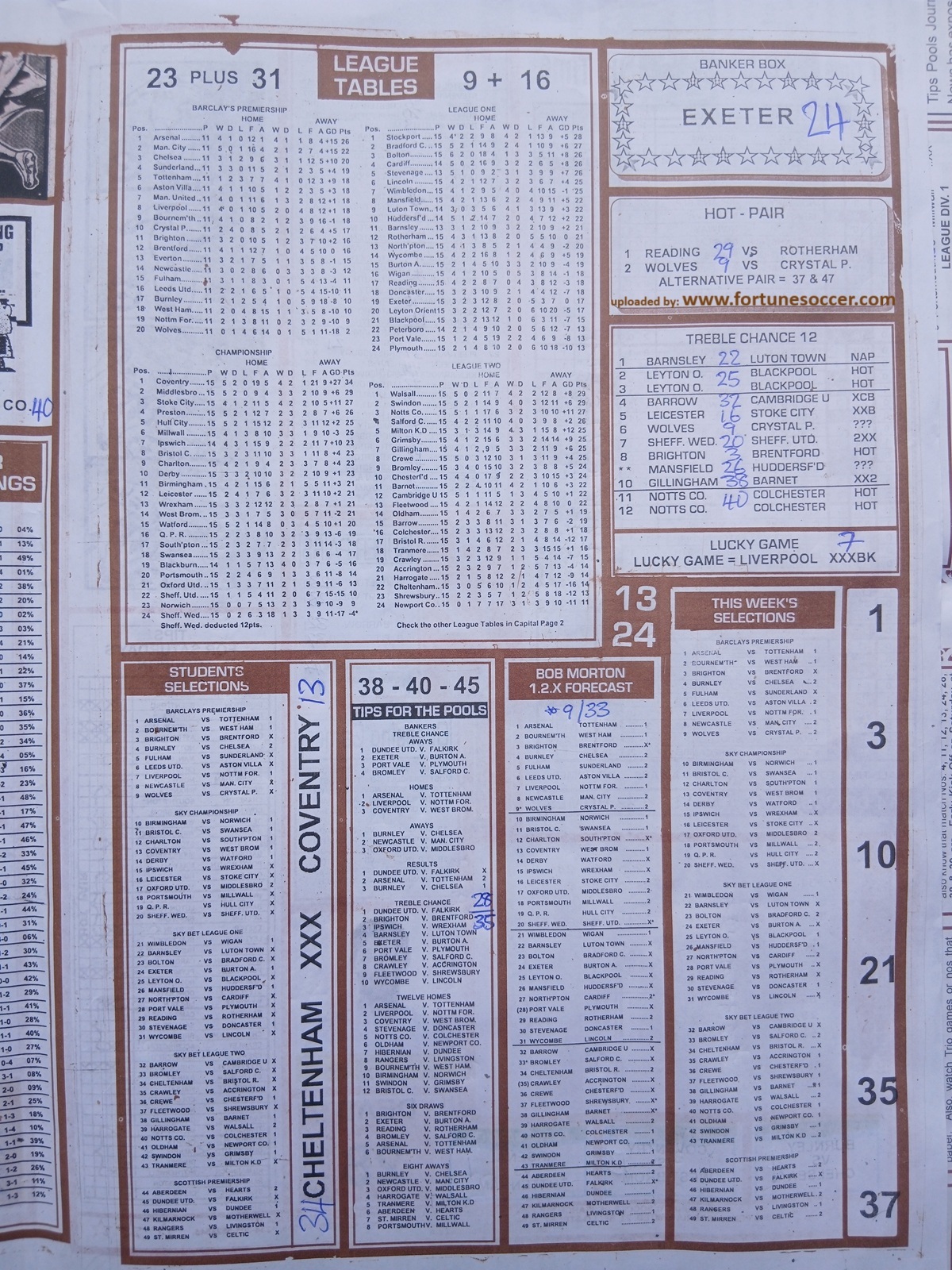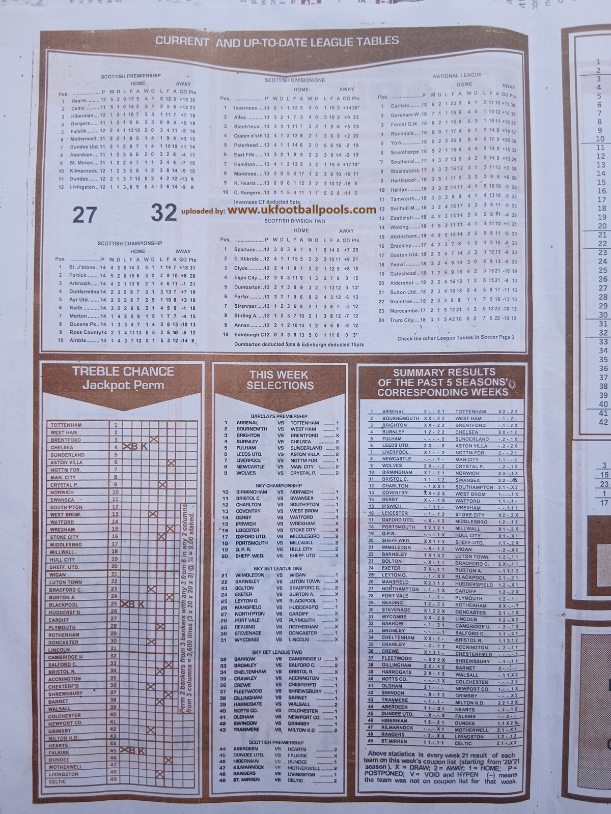 – Weekly Telegraph Pools Papers: Final results pool paper, the new dream late news, weekly telegraph pool papers