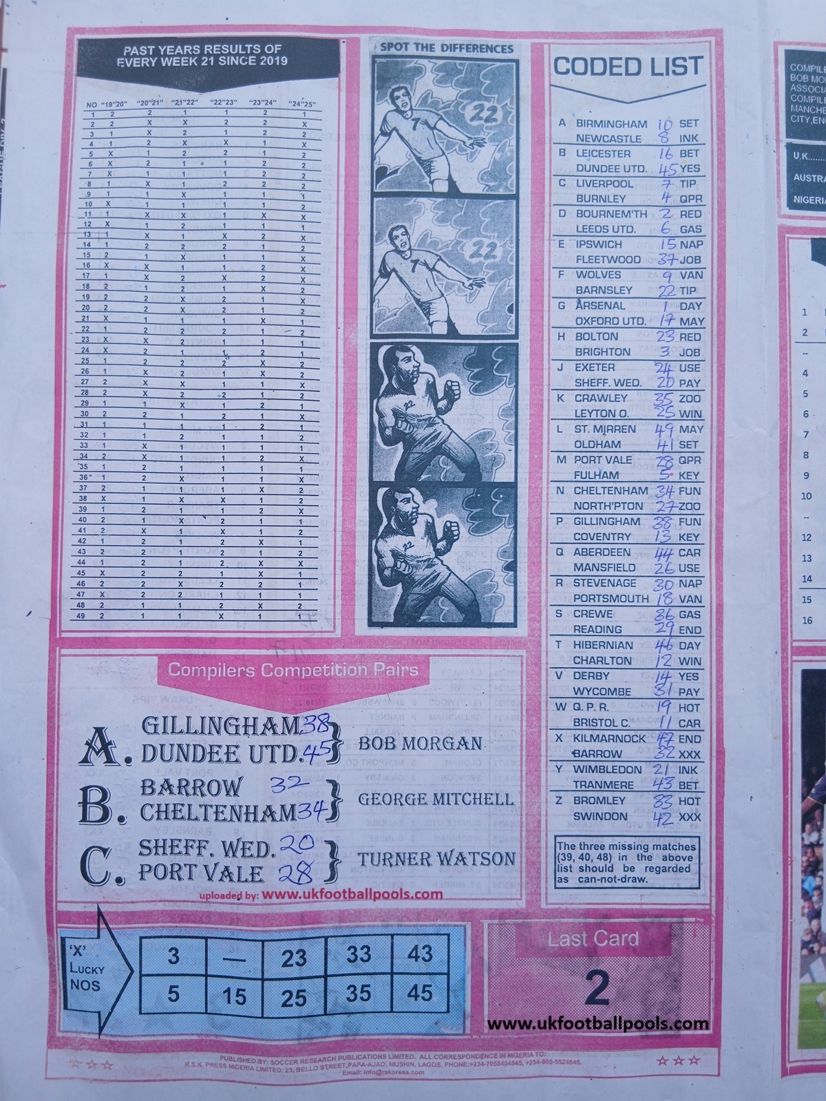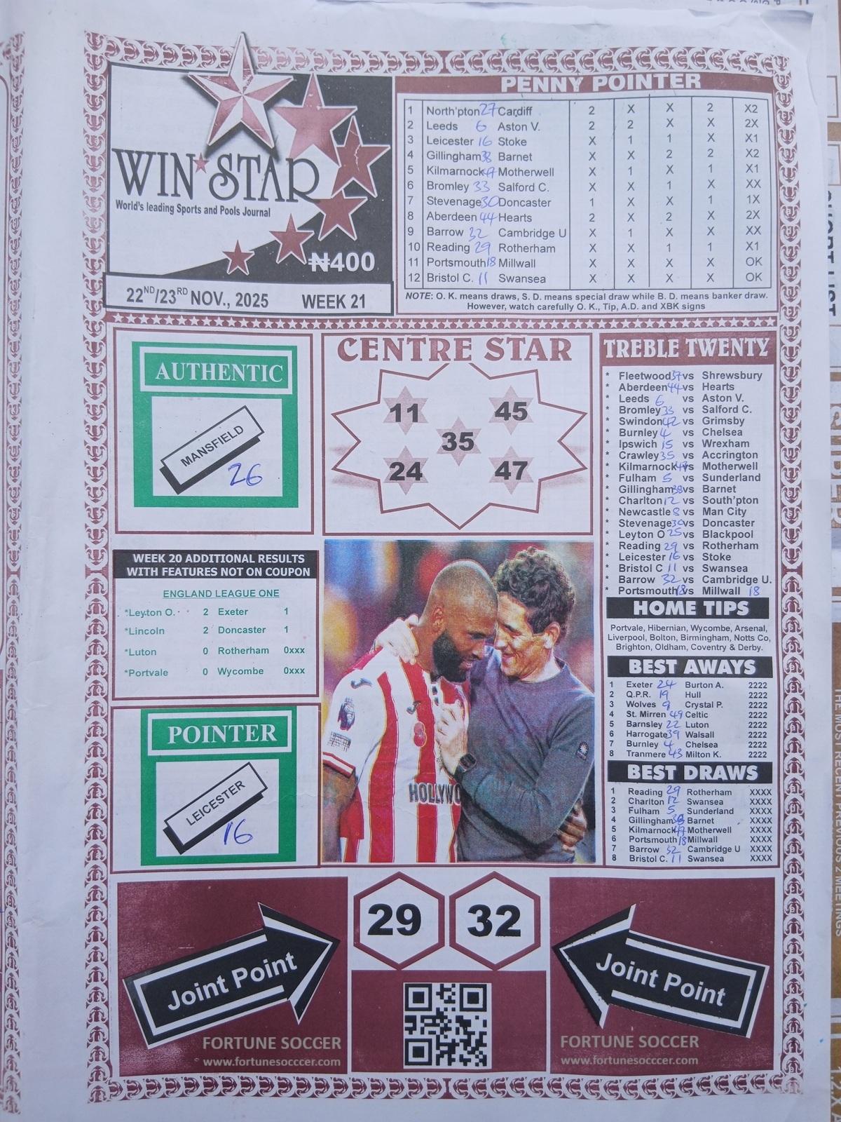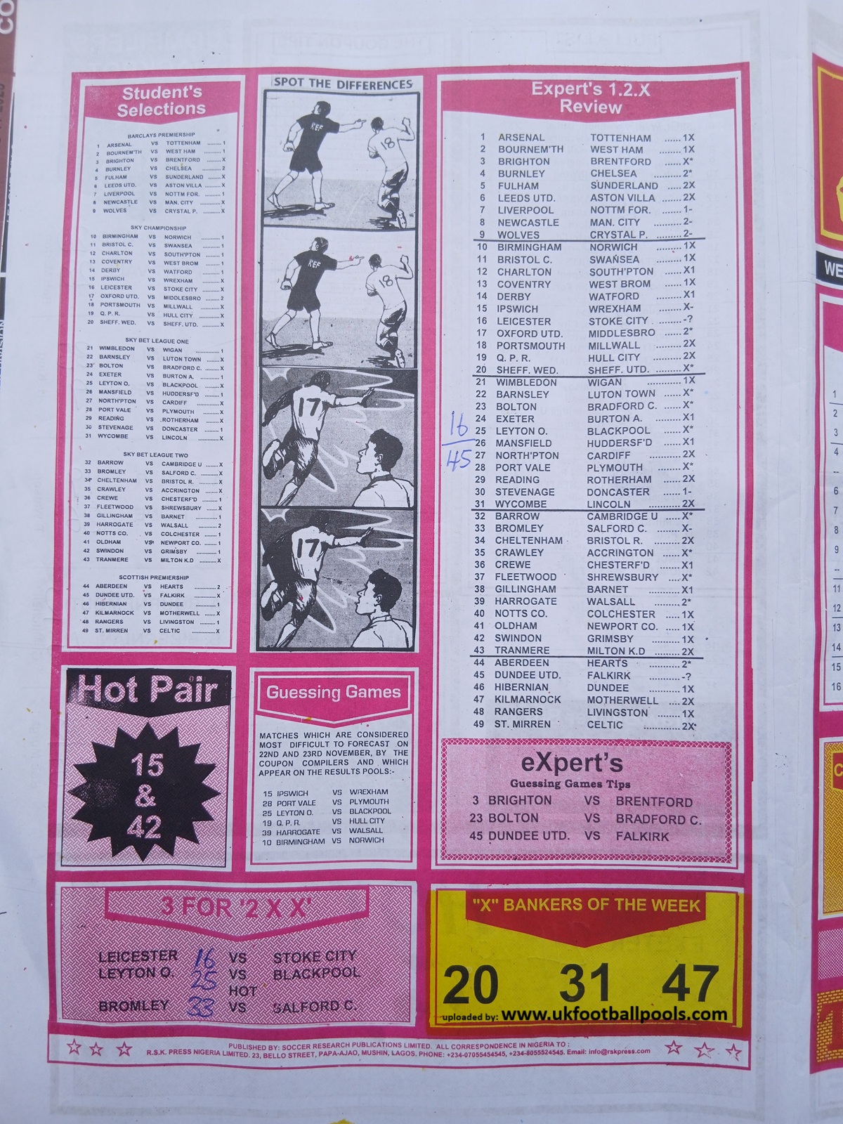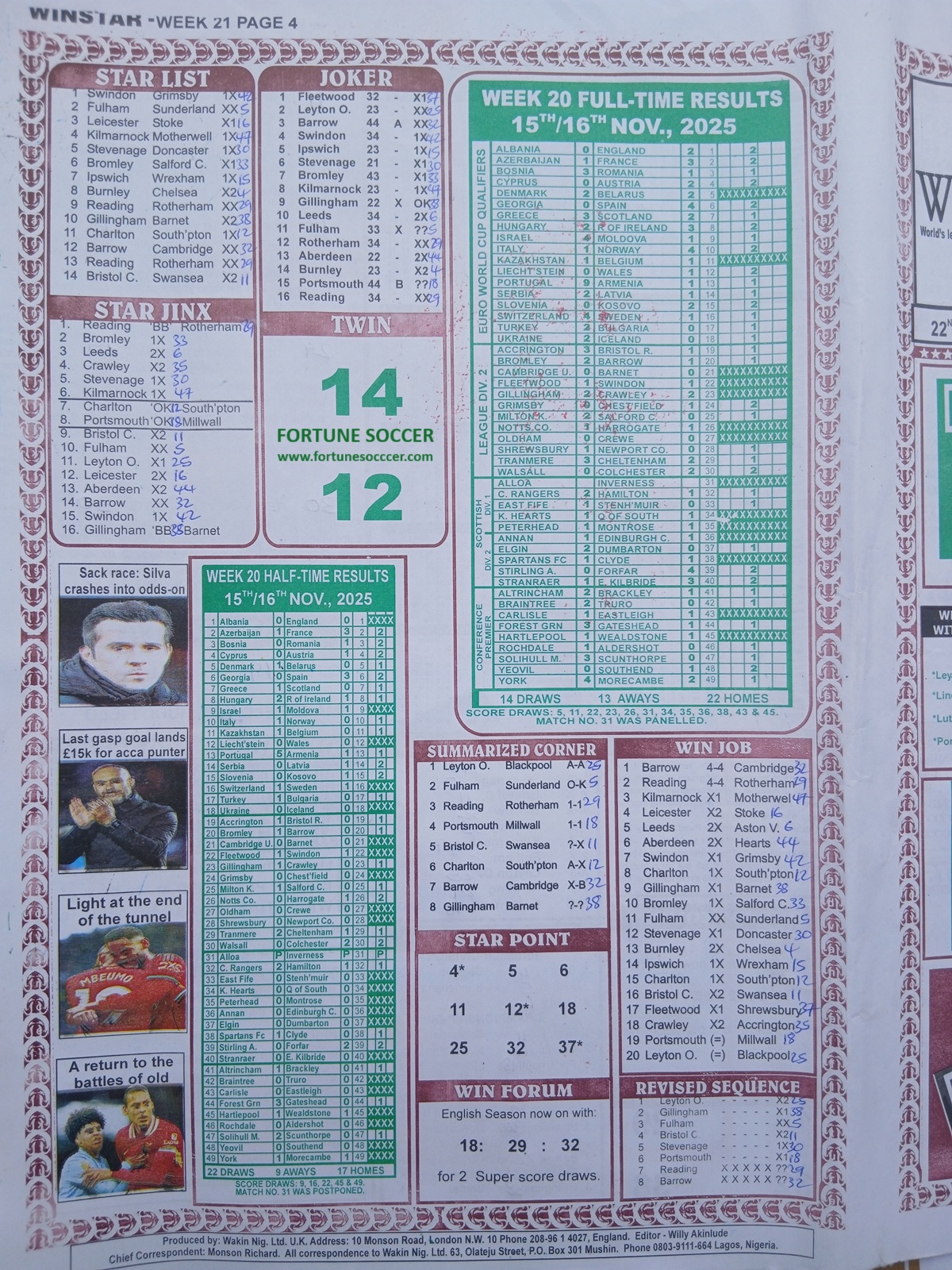 Week 21 rsk papers 2025/2026: Welcome to fortune soccer rsk papers here we provide you with the latest and current RSK papers this week 21: Soccer X Research, Bob Morton, Capital International, WinStar Pool Paper, Bigwin Soccer Pool Paper, Pools Telegraph and pool papers from other publishers such as Dream International Research, Fortune ‘X’ Matrix, Special Advance Fixtures, Right On Fixtures, Happy Joe and Dream International Fixtures.