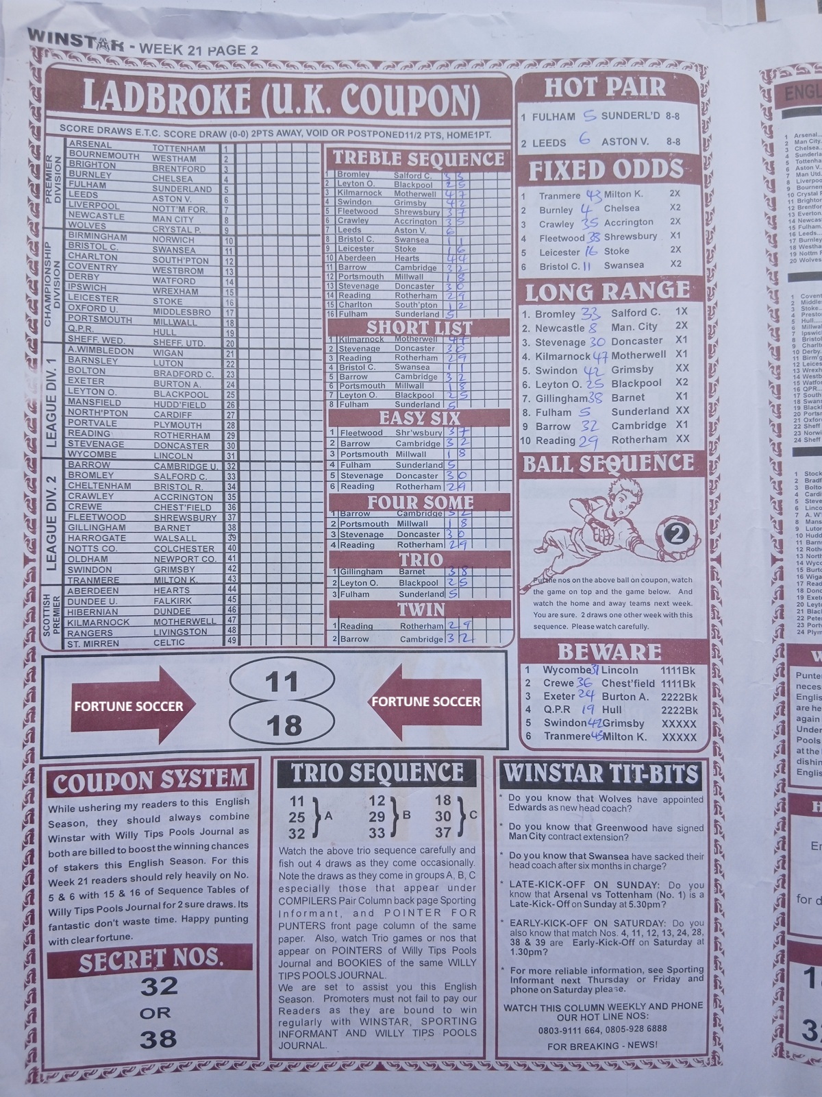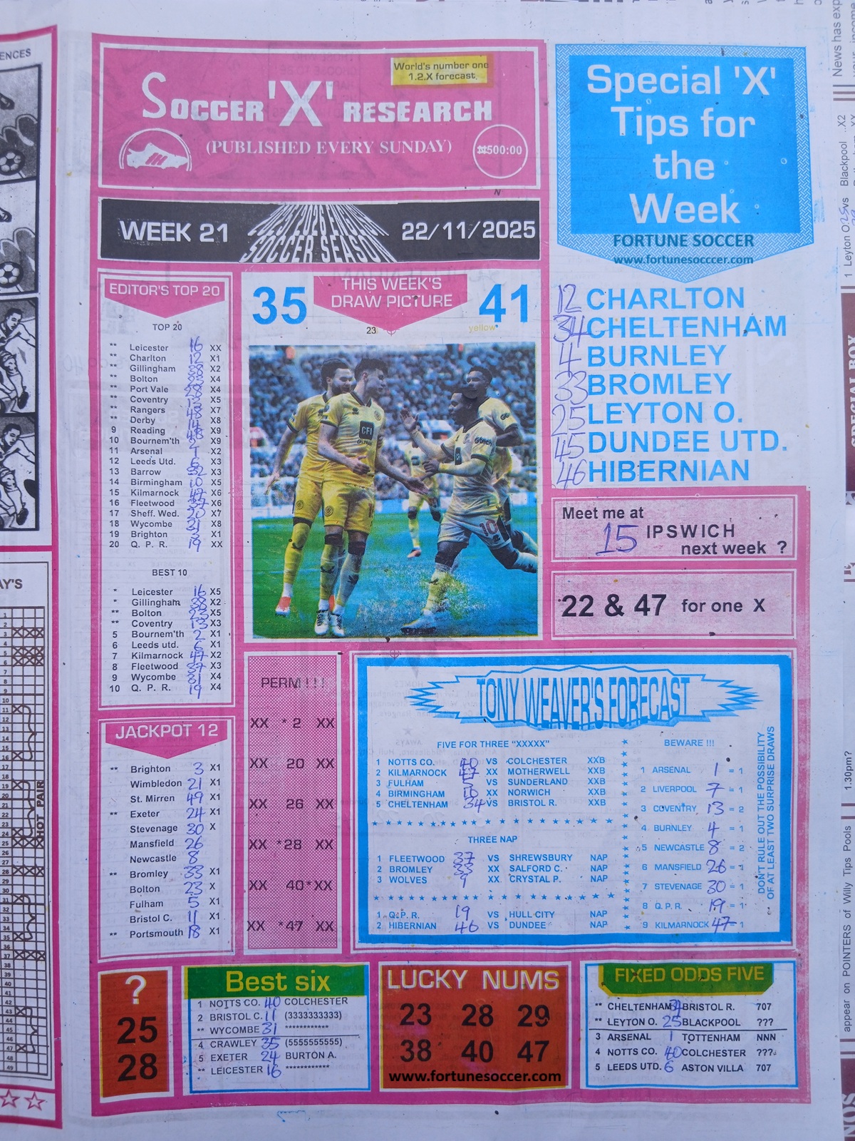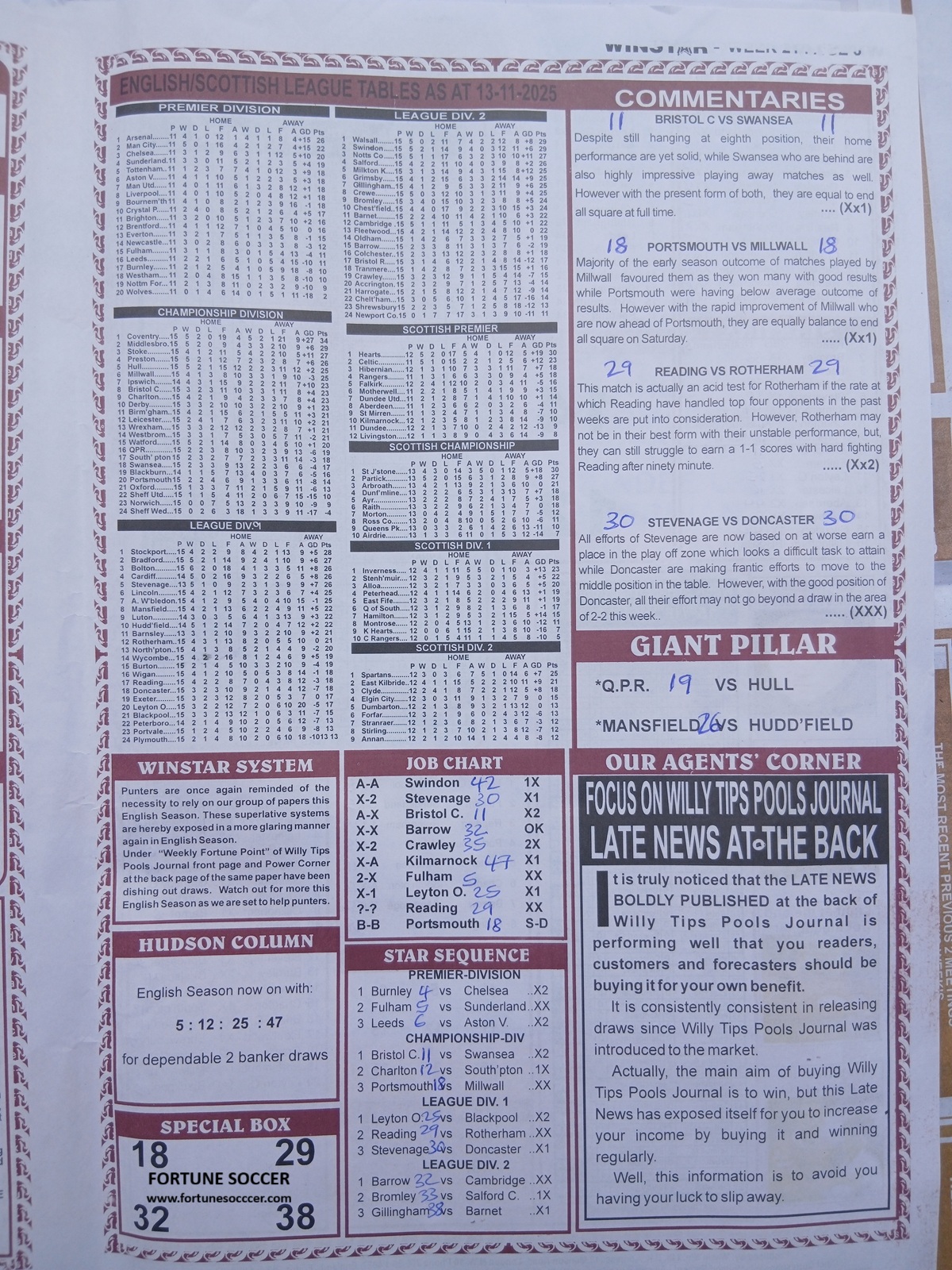 – Fortune Late News Papers: Sporting telegraph, Sport ‘x’ officer, mirror international, soccer standard and sporting informant late news pool papers