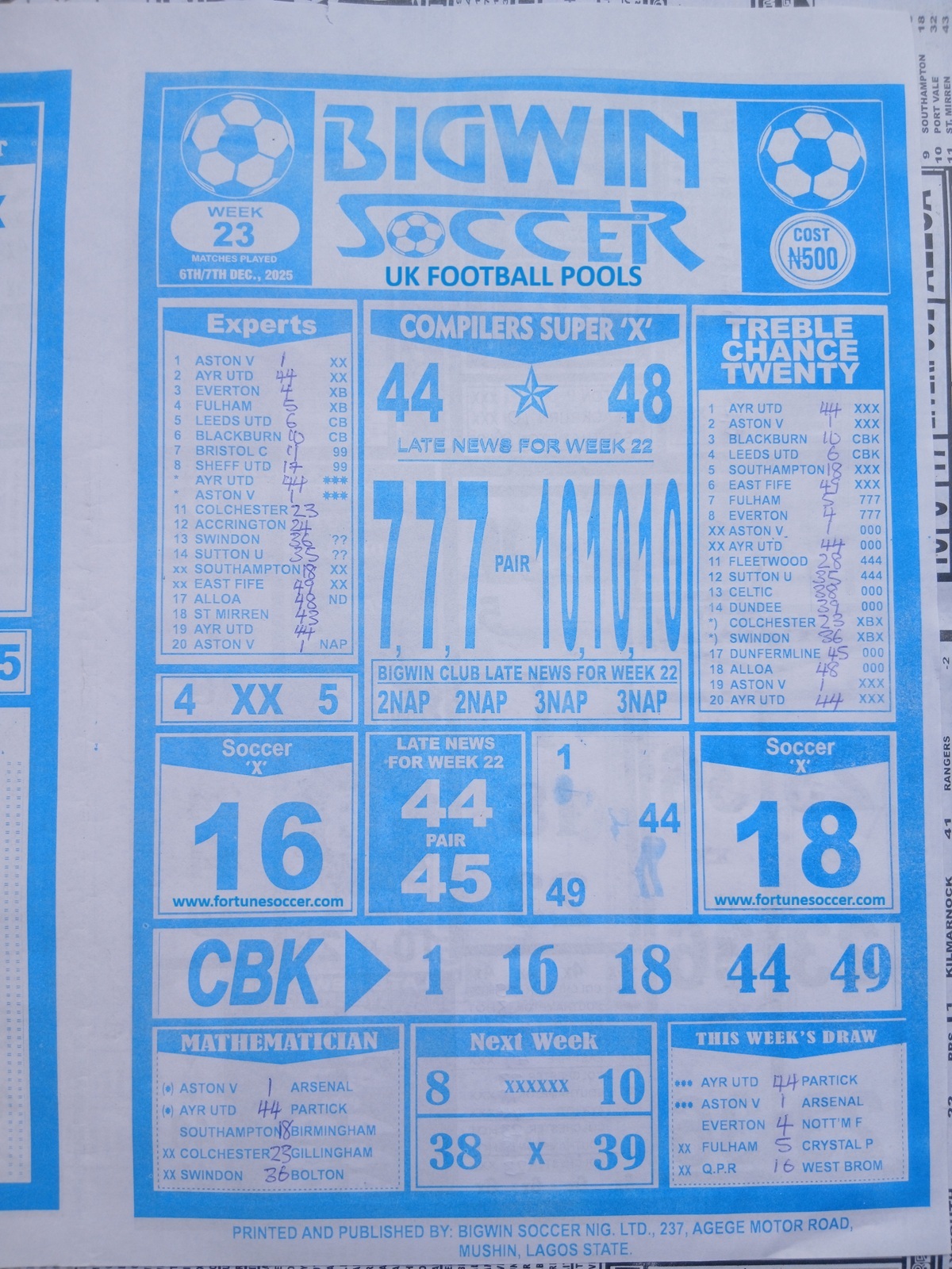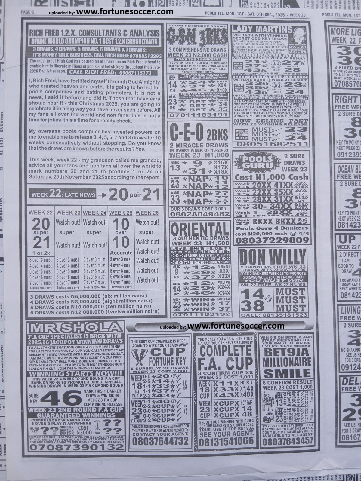 Week 23 rsk papers 2025/2026: Welcome to fortune soccer rsk papers here we provide you with the latest and current RSK papers this week 23: Soccer X Research, Bob Morton, Capital International, WinStar Pool Paper, Bigwin Soccer Pool Paper, Pools Telegraph and pool papers from other publishers such as Dream International Research, Fortune ‘X’ Matrix, Special Advance Fixtures, Right On Fixtures, Happy Joe and Dream International Fixtures.