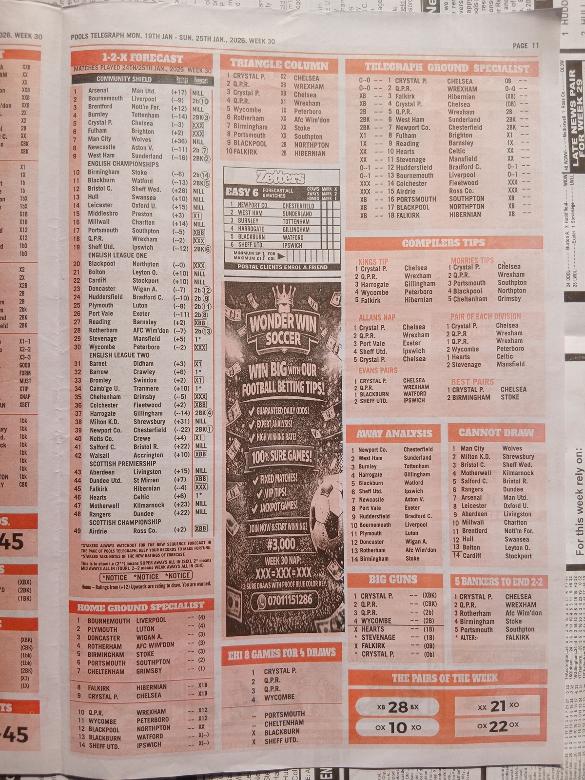 – Weekly Telegraph Pools Papers: Final results pool paper, the new dream late news, weekly telegraph pool papers