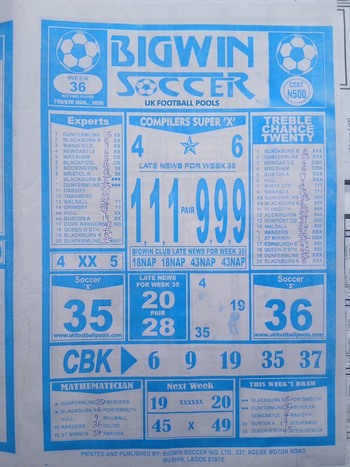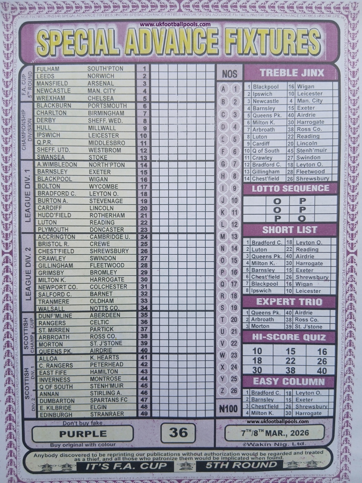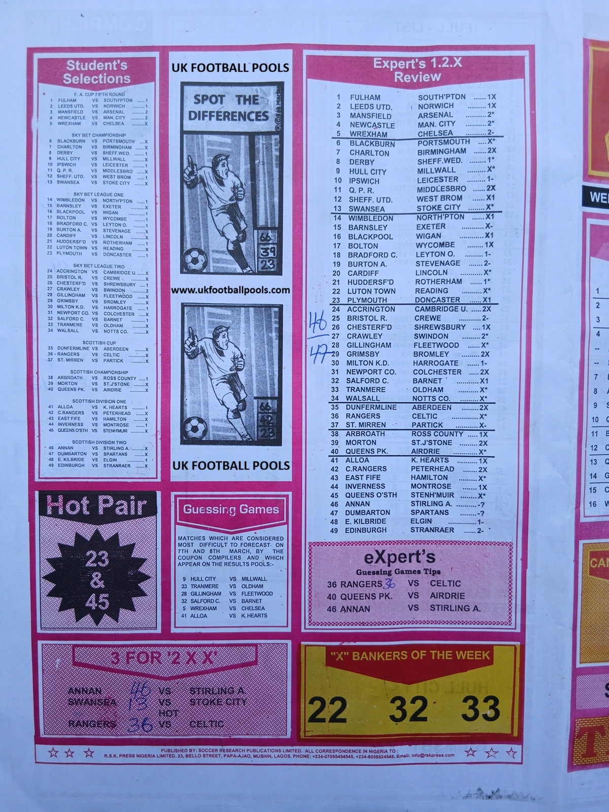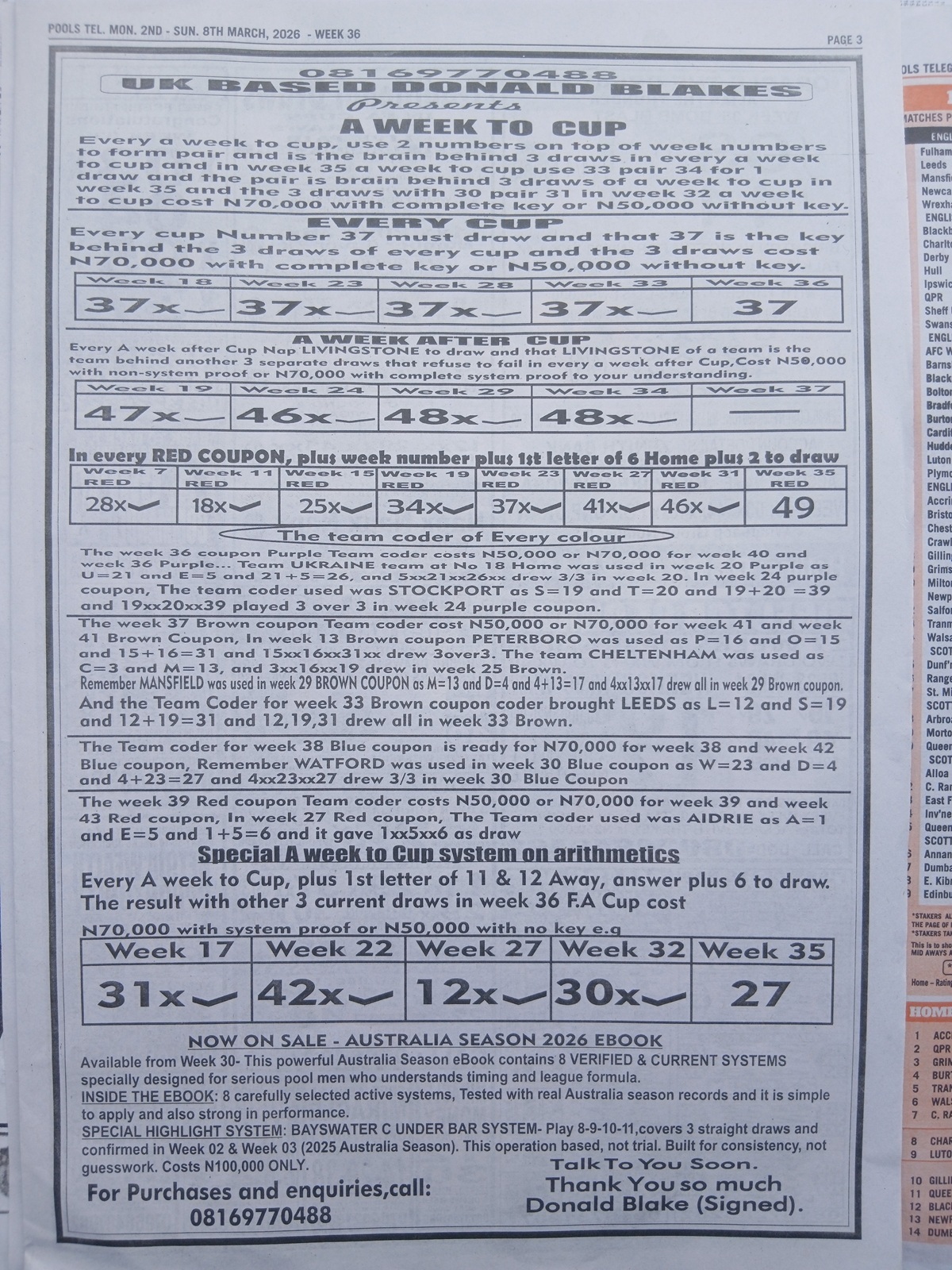Week 36 rsk papers 2026/2027: Welcome to fortune soccer rsk papers here we provide you with the latest and current RSK papers this week 36: Soccer X Research, Bob Morton, Capital International, WinStar Pool Paper, Bigwin Soccer Pool Paper, Pools Telegraph and pool papers from other publishers such as Dream International Research, Fortune ‘X’ Matrix, Special Advance Fixtures, Right On Fixtures, Happy Joe and Dream International Fixtures.