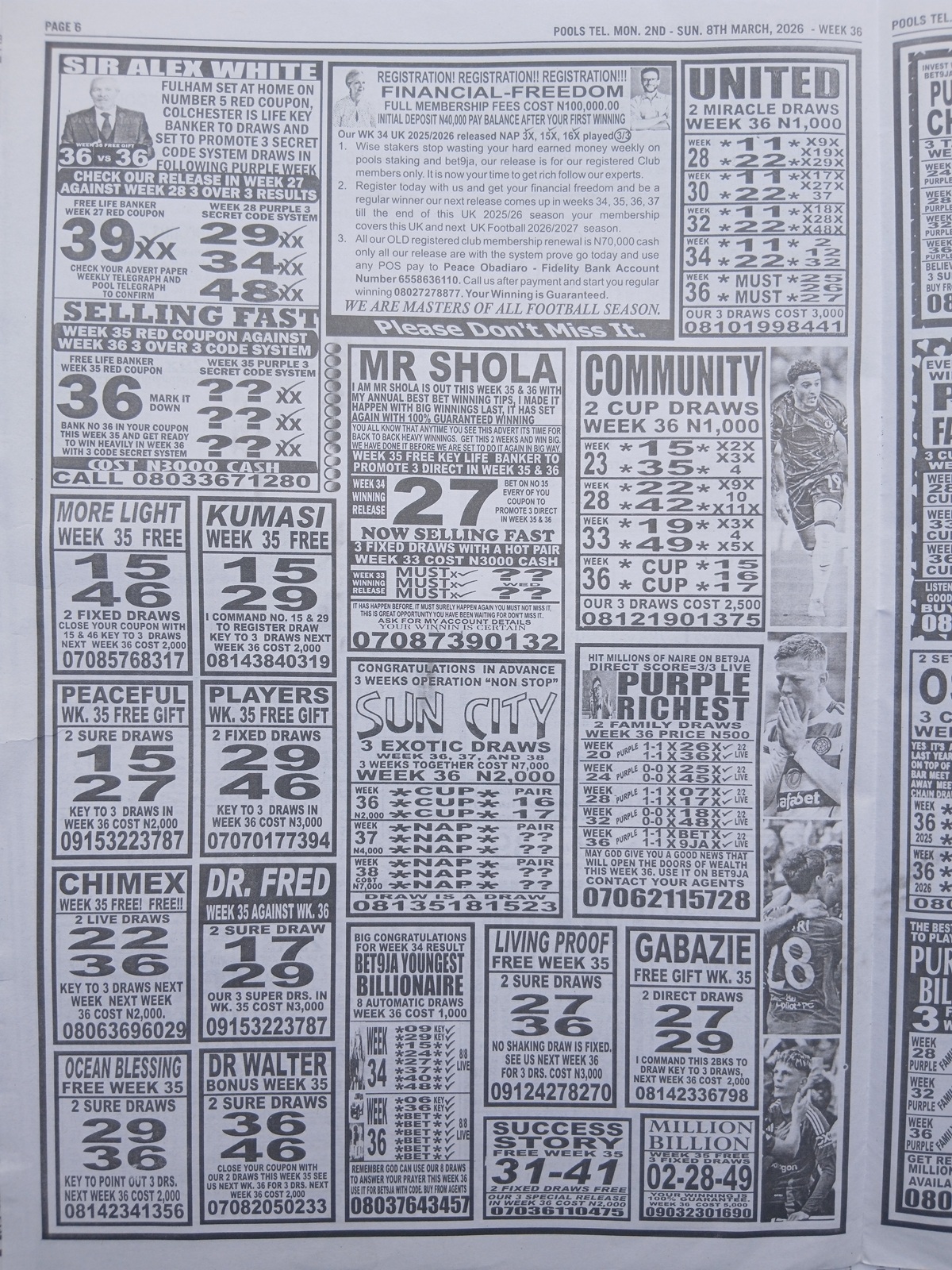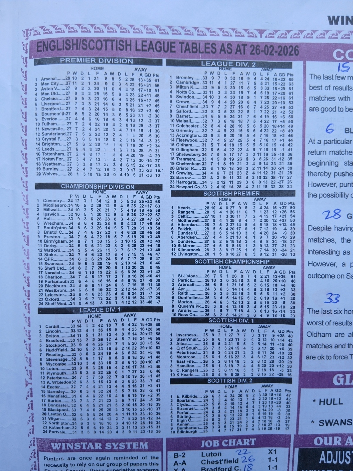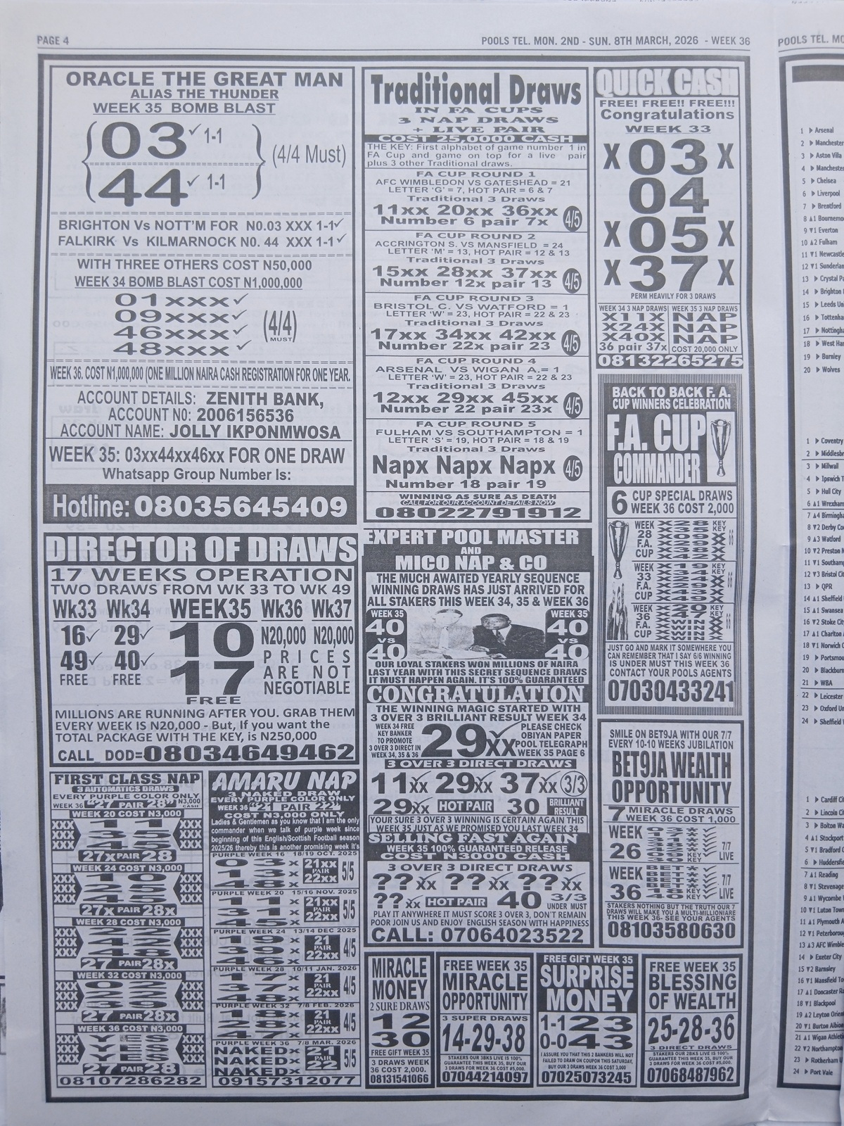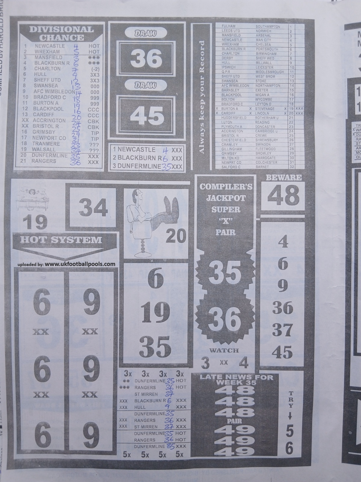 – Pool Paper for This Week: Happy joe pool paper, winstar pool paper, temple of draws late news, right on fixtures, mirror punters guide