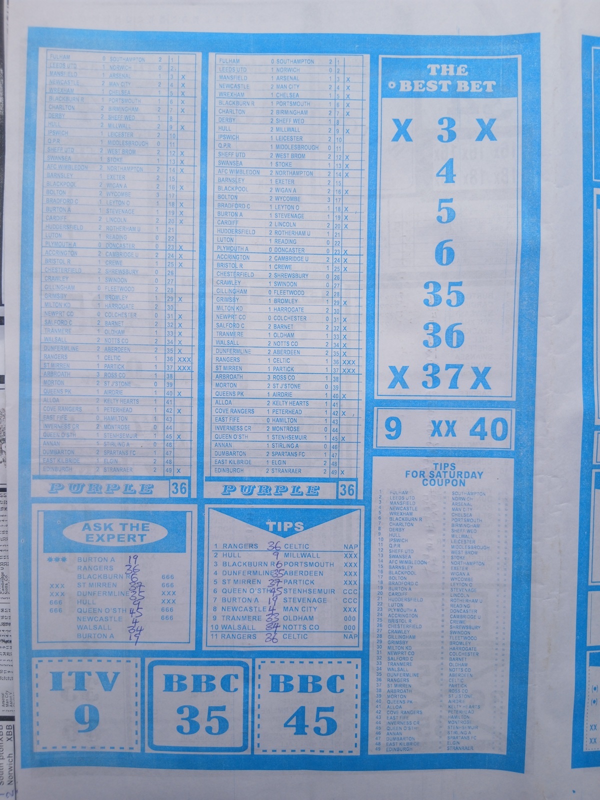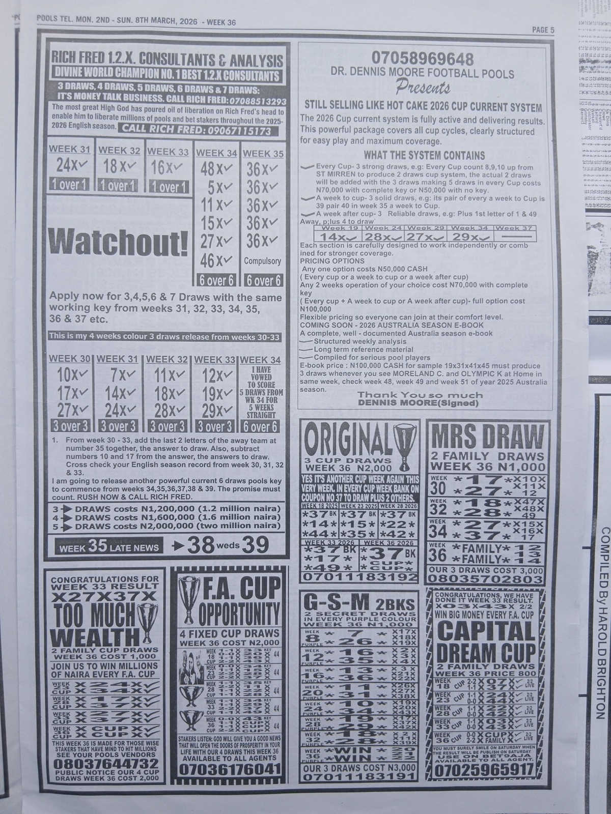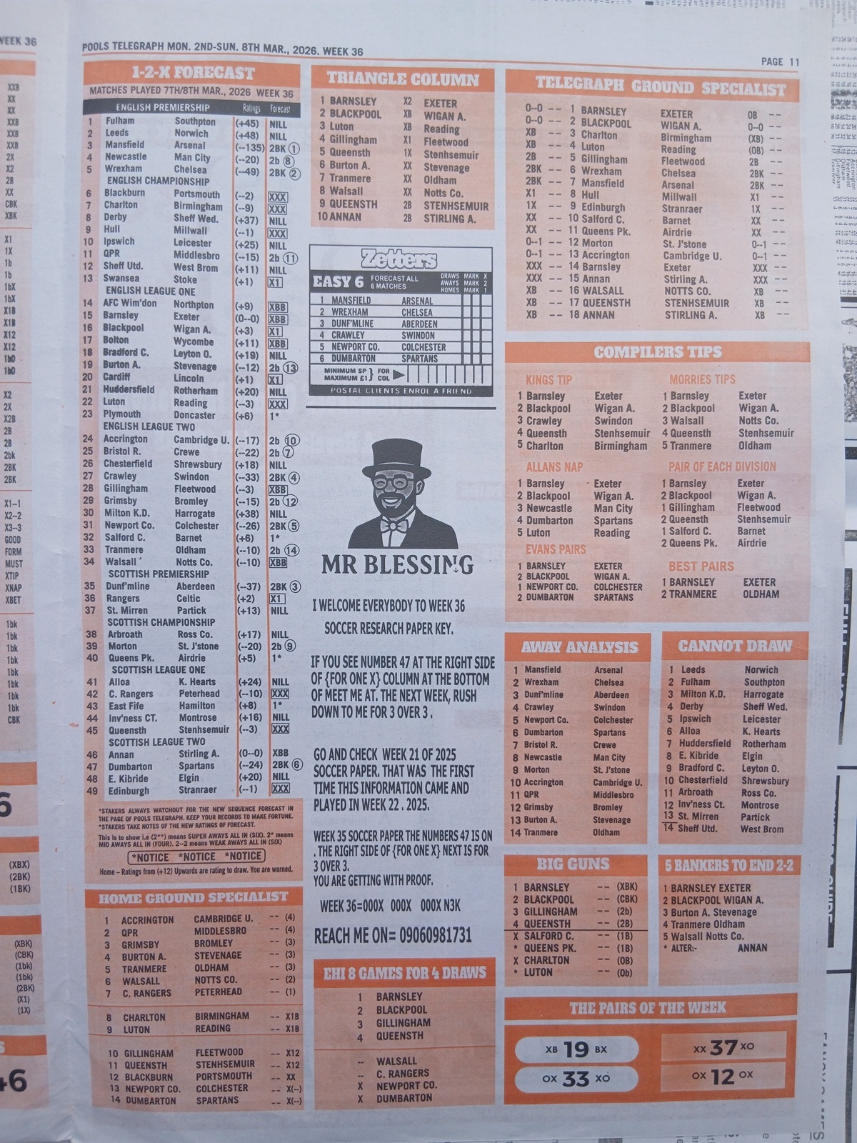 – Weekly Telegraph Pools Papers: Final results pool paper, the new dream late news, weekly telegraph pool papers