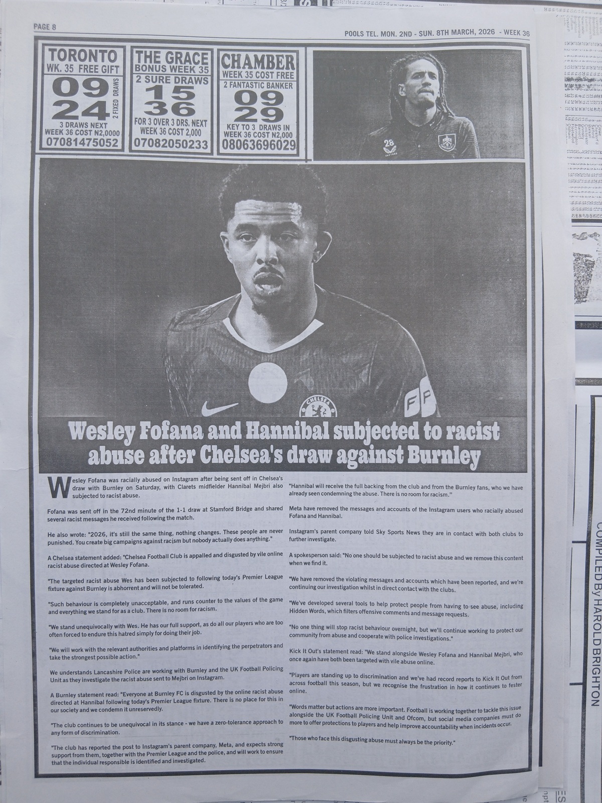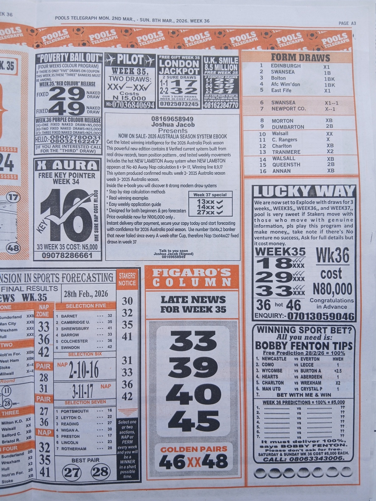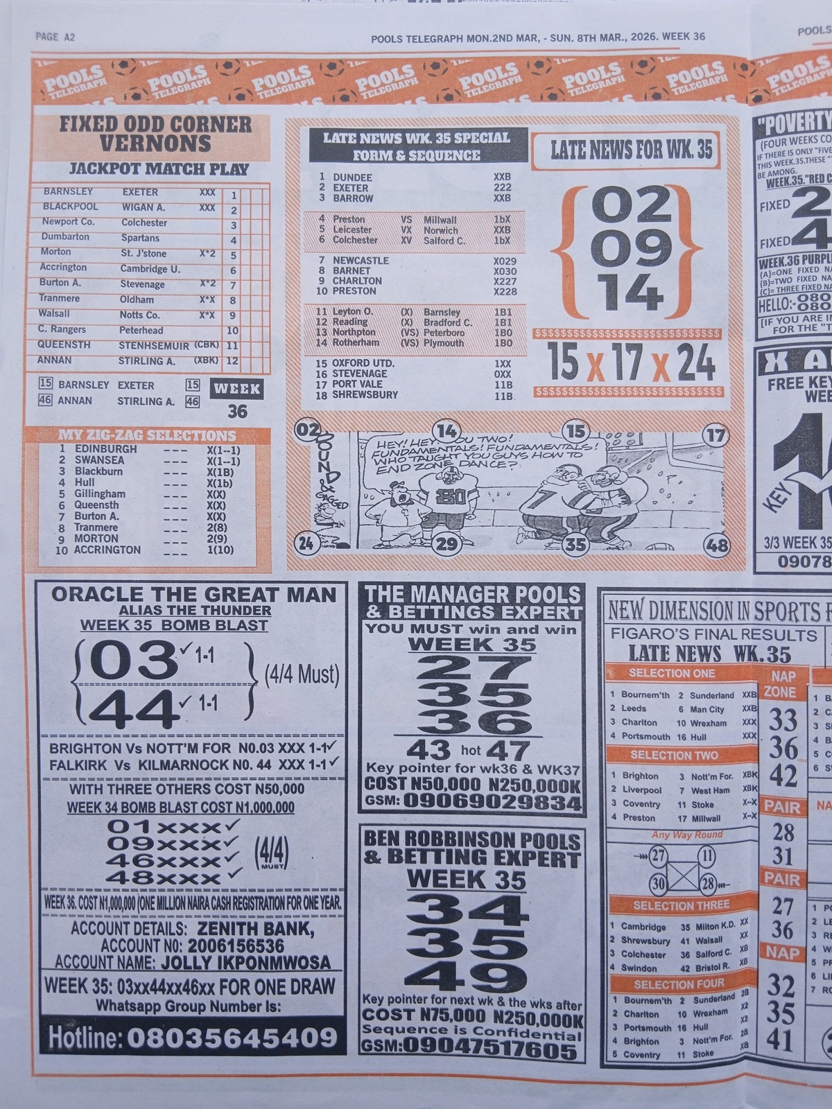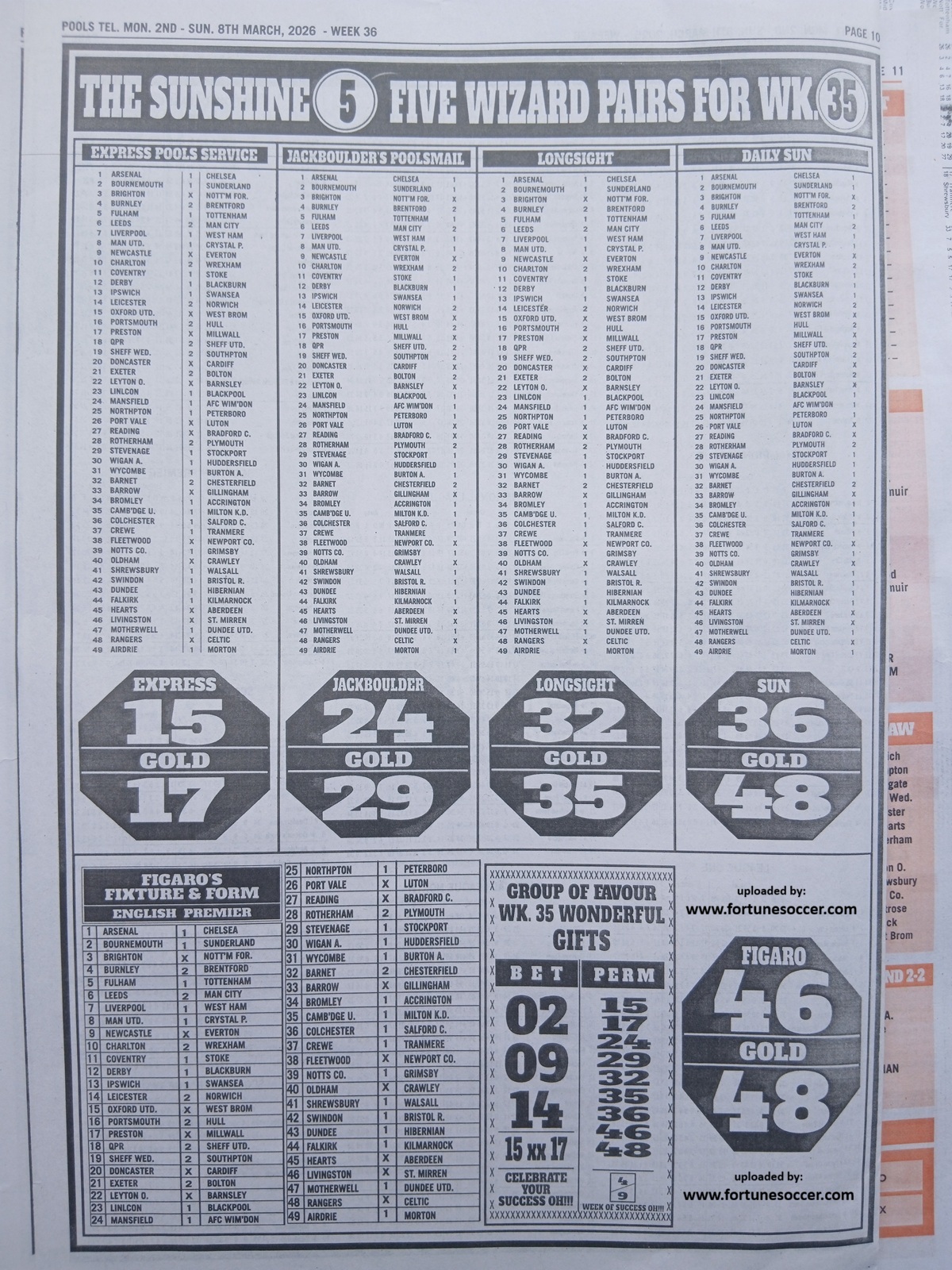 – Fortune Late News Papers: Sporting telegraph, Sport ‘x’ officer, mirror international, soccer standard and sporting informant late news pool papers