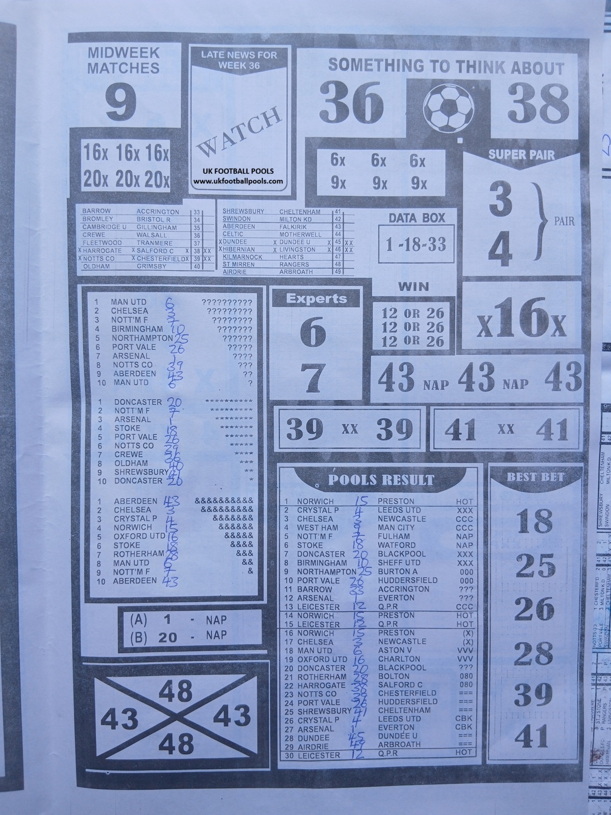 – Weekly Telegraph Pools Papers: Final results pool paper, the new dream late news, weekly telegraph pool papers