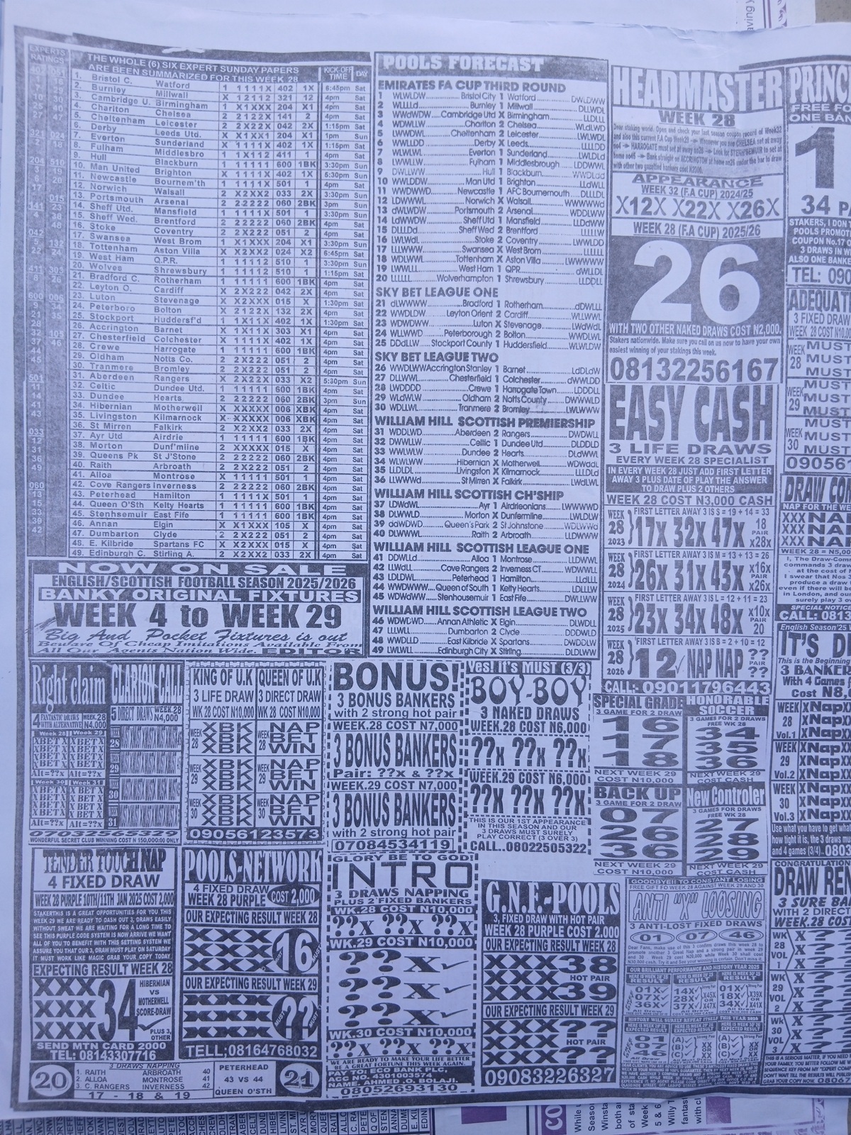 Week 28 weekly telegraph paper 2026/2027: Winning the football pools using forecasting papers involves a combination of strategy, analysis, and informed decision-making. Familiarise yourself with how to interpret the various pools papers for week 28. They provide statistical insights that can guide your picks. Review expert analyses and tips. They can offer valuable insights that you might not have considered.
