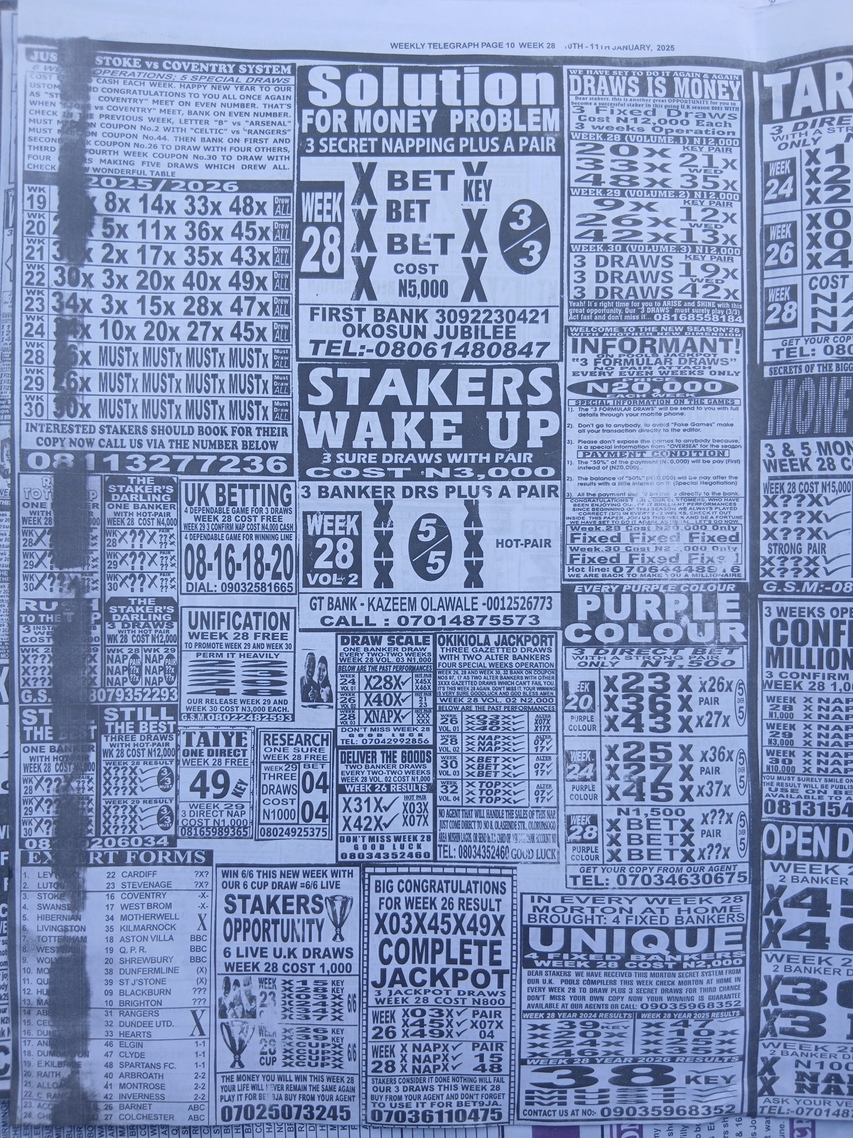 Pool paper for this week 28 pools papers and stakers association of nigeria